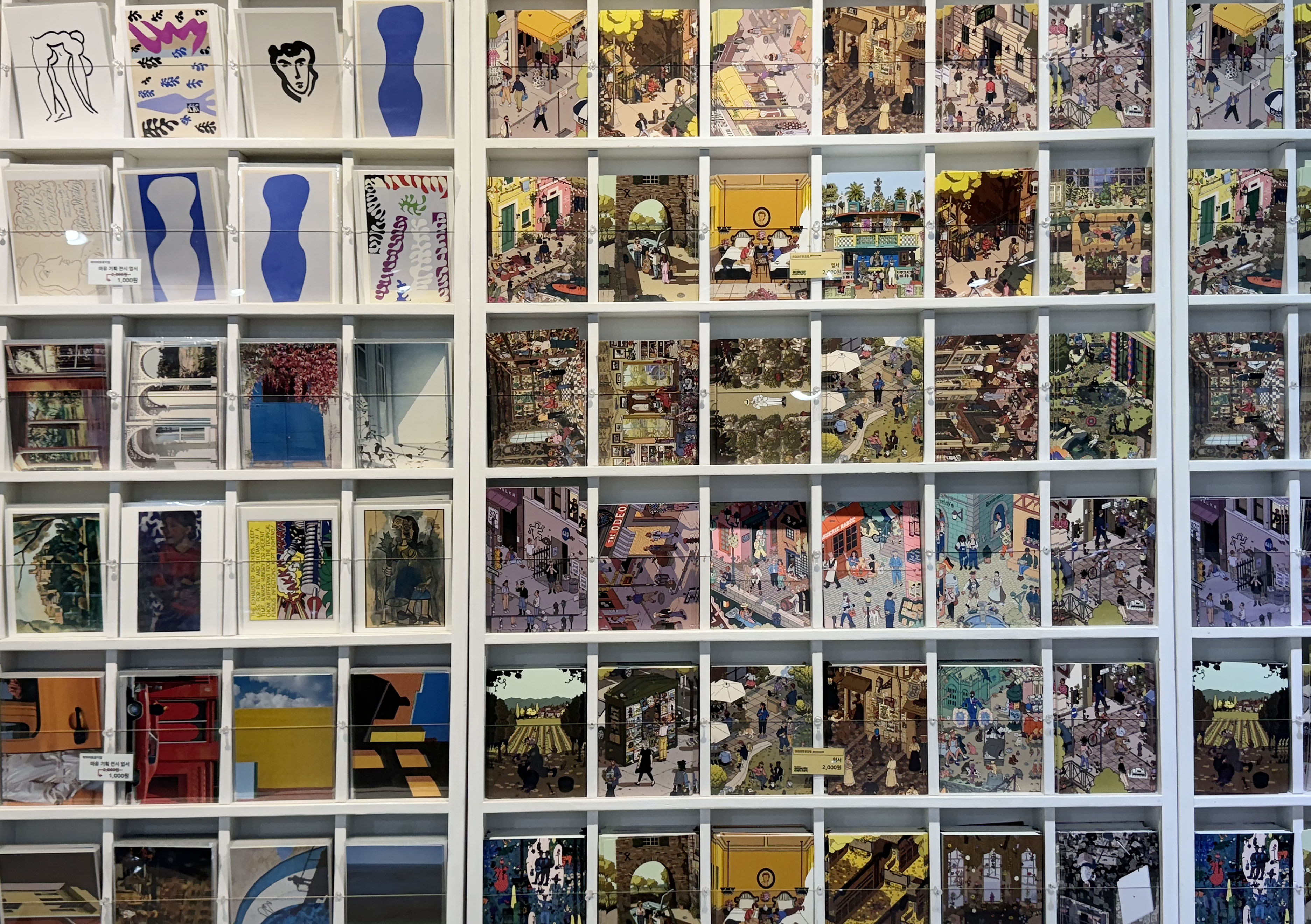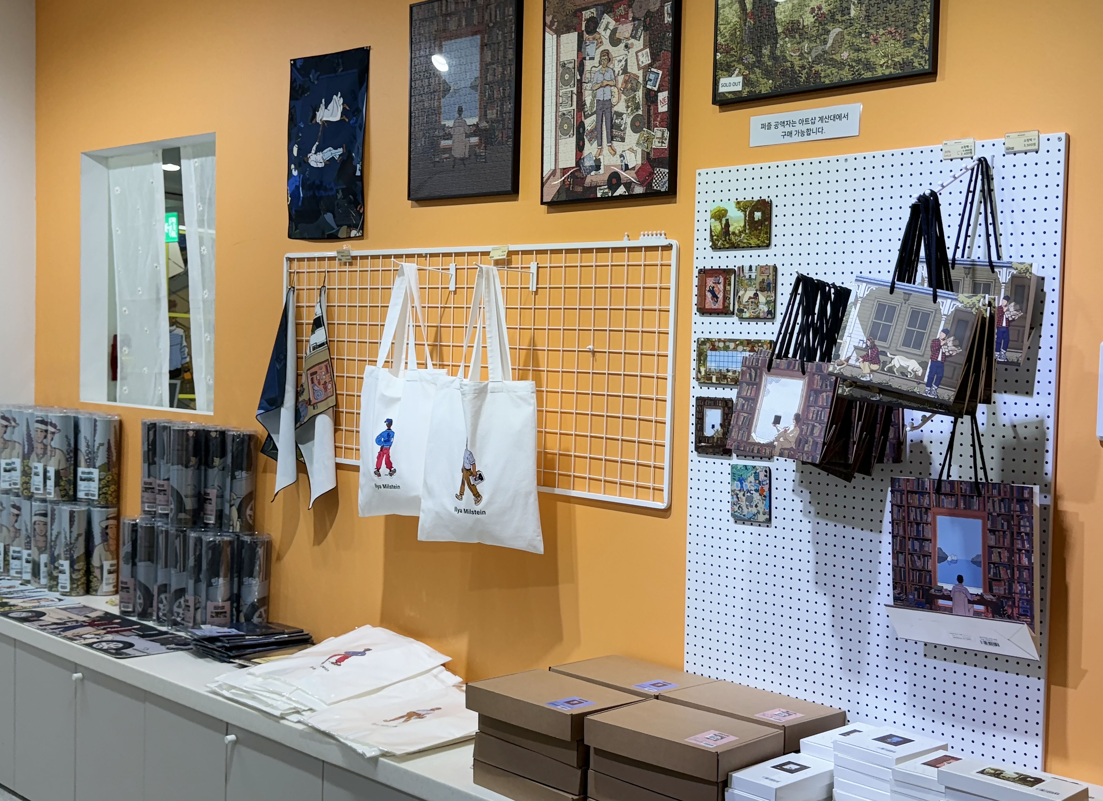 현장에서는 평일에 시간을 맞추면 무료 오디오 도슨트를 들을 수 있고, 시간이 맞지 않더라도 ‘큐피커’어플을 통해 3,000원의 유료 도슨트로 더욱 실감 나게 전시를 즐길 수 있었습니다. 약 40-50분 정도의 관람 시간으로 여유를 갖고 전시를 즐겨 보시는 것은 어떠실까요? 전시 관람을 마치고 나오면 정말 다양한 굿즈의 라인업을 만나보실 수 있는데요. 아기자기한 일러스트레이션 작화가 많았던 만큼 사고 싶은 엽서의 개수가 많아 가짓수를 줄이는 것이 힘들더라고요. 이 외에도 퍼즐, 수첩, 테이프, 포스터, 그립톡과 클립, 포스트잇 등 정말 다양한 종류의 굿즈들 역시 이 전시의 매력 요소 중 하나였습니다.