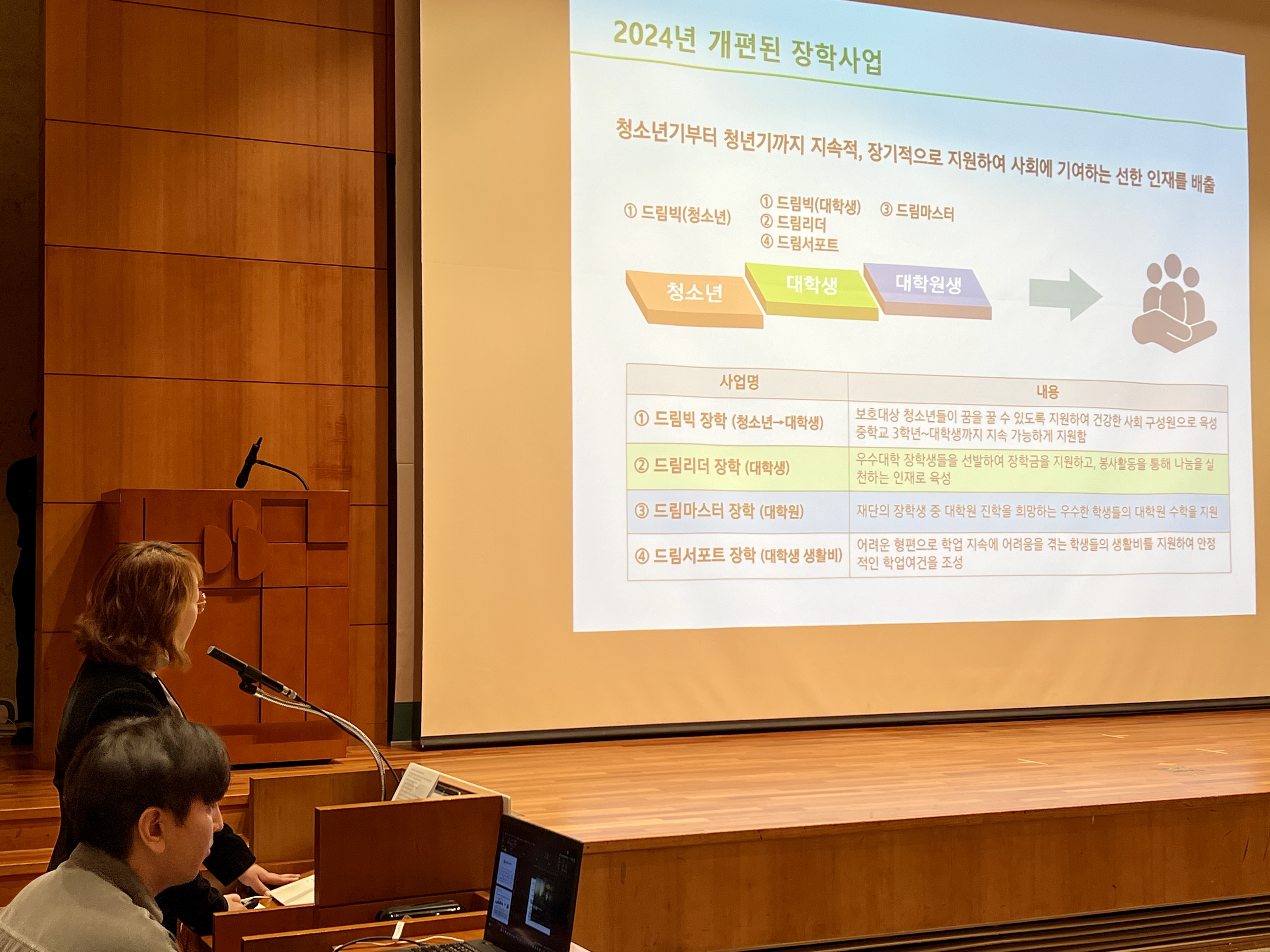 1989년부터 대학생을 중심으로 선발, 지원해오던 재단 장학사업은 2024년을 맞아 더 다양한 학생들에게 교육 기회를 나누기 위해 대폭 개편됐다. “청소년기부터 청년기까지 지속적으로 그리고 장기적으로 지원해 사회에 기여하는 선한 인재로 성장시키고자 청소년, 대학생, 대학원생까지 단계별 장학사업을 준비했습니다.”