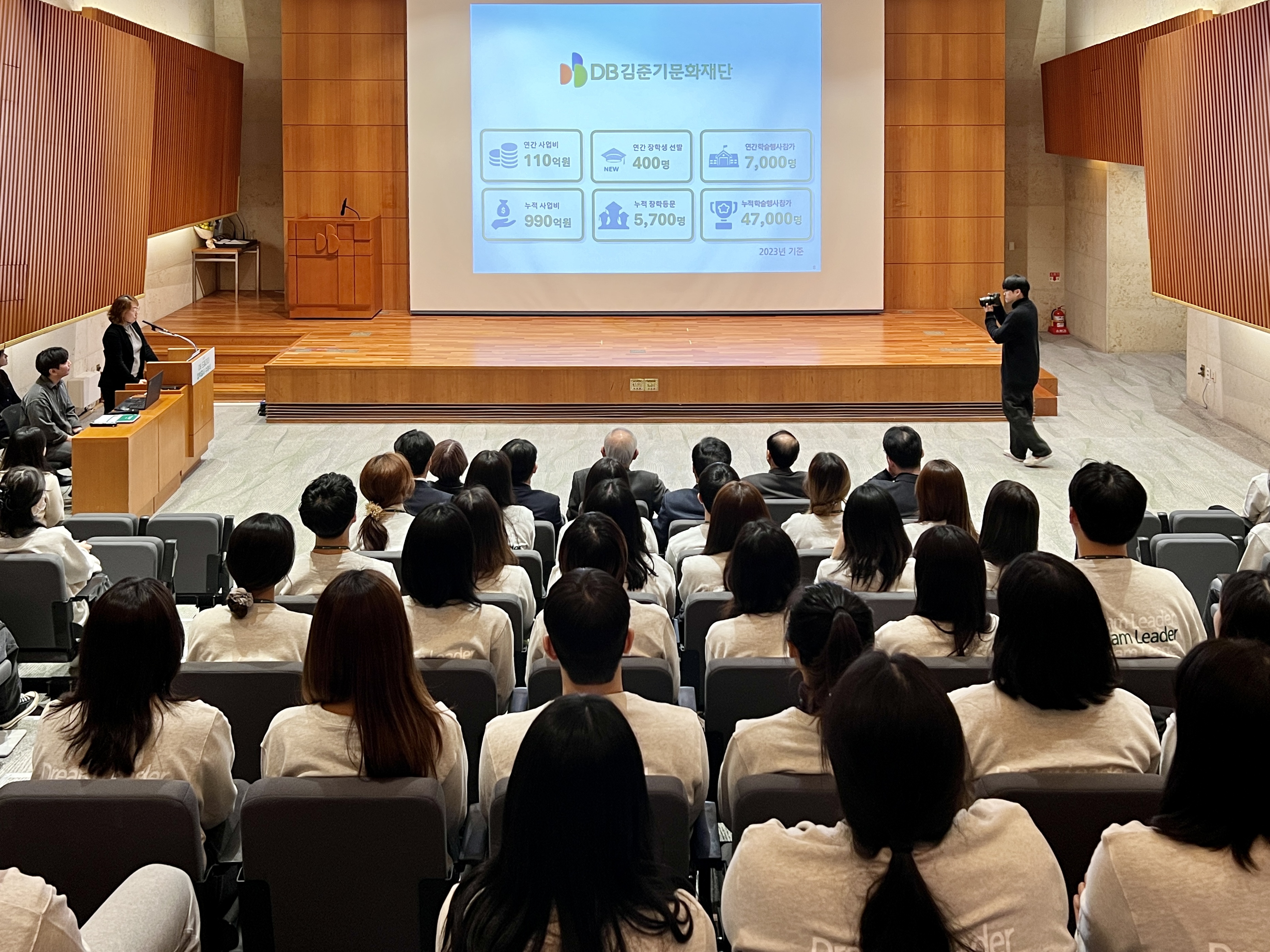 “DB김준기문화재단은 ‘미래는 꿈과 희망을 가지고 도전하는 자의 것’이라는 DB그룹 창업자 김준기 회장의 뜻에 따라 김준기 회장의 사재를 출연하여 1988년 설립했습니다. 우리 재단은 꿈과 희망을 가지고 도전하는 청년들에게 더 많은 기회를 제공하고자 2024년부터 장학사업을 확대, 개편했습니다. 앞으로 드림리더 장학생 여러분이 큰 꿈을 가지고 더 멀리 나아갈 수 있도록 든든한 동행자가 되겠습니다.”