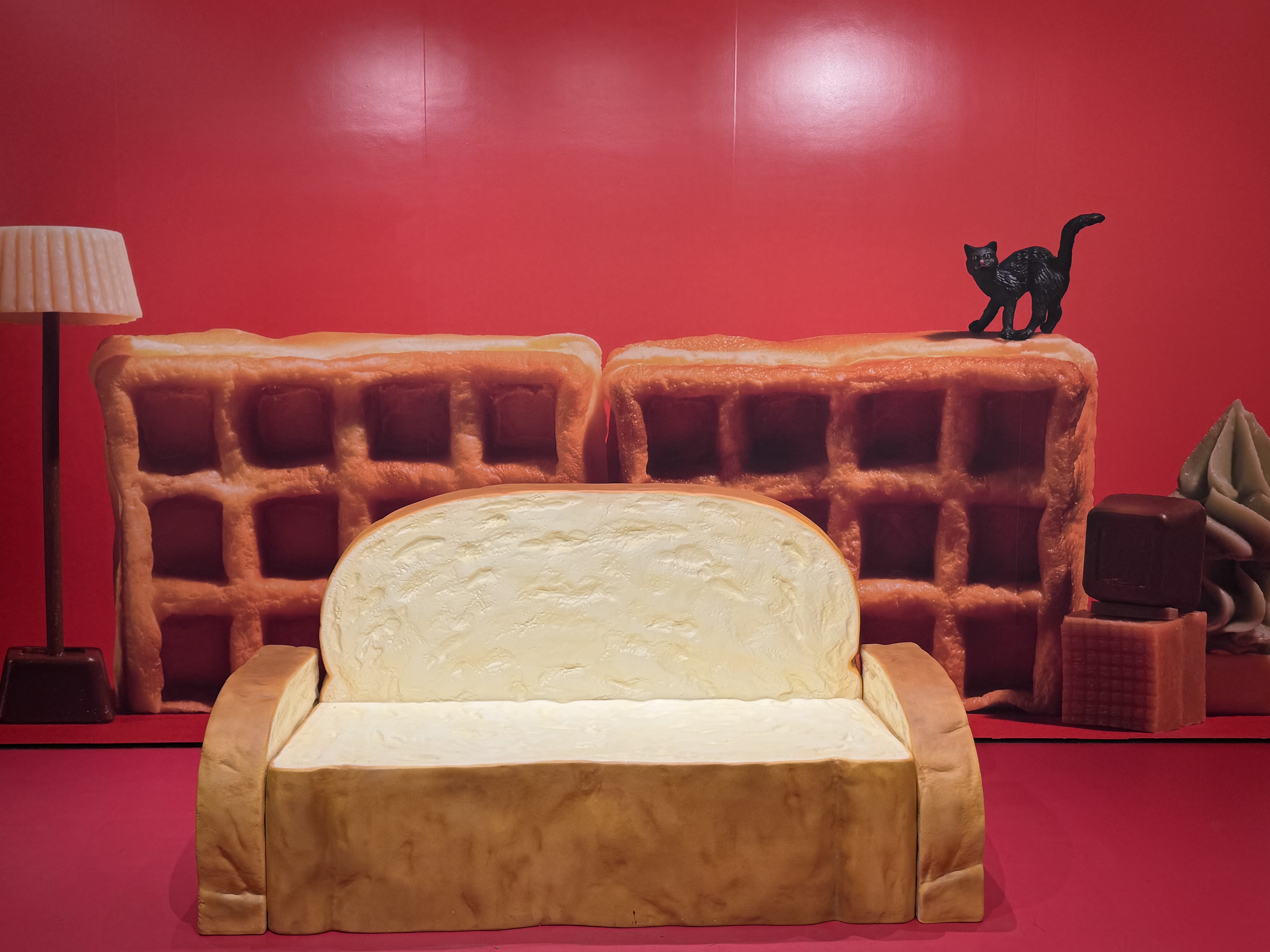 △ 오늘 하루도 껌이지! 일본어로 ‘껌’을 뜻하는 ‘(ガム )가무’와 ‘힘내다’ 를 뜻 하는 ‘(力を入れる )간바로우’’의 비슷한 발음을 활용한 언어유희로 작품을 만들었답니다. 자세히 보면 침대가 껌으로 만들어져 있는 걸 볼 수 있어요.