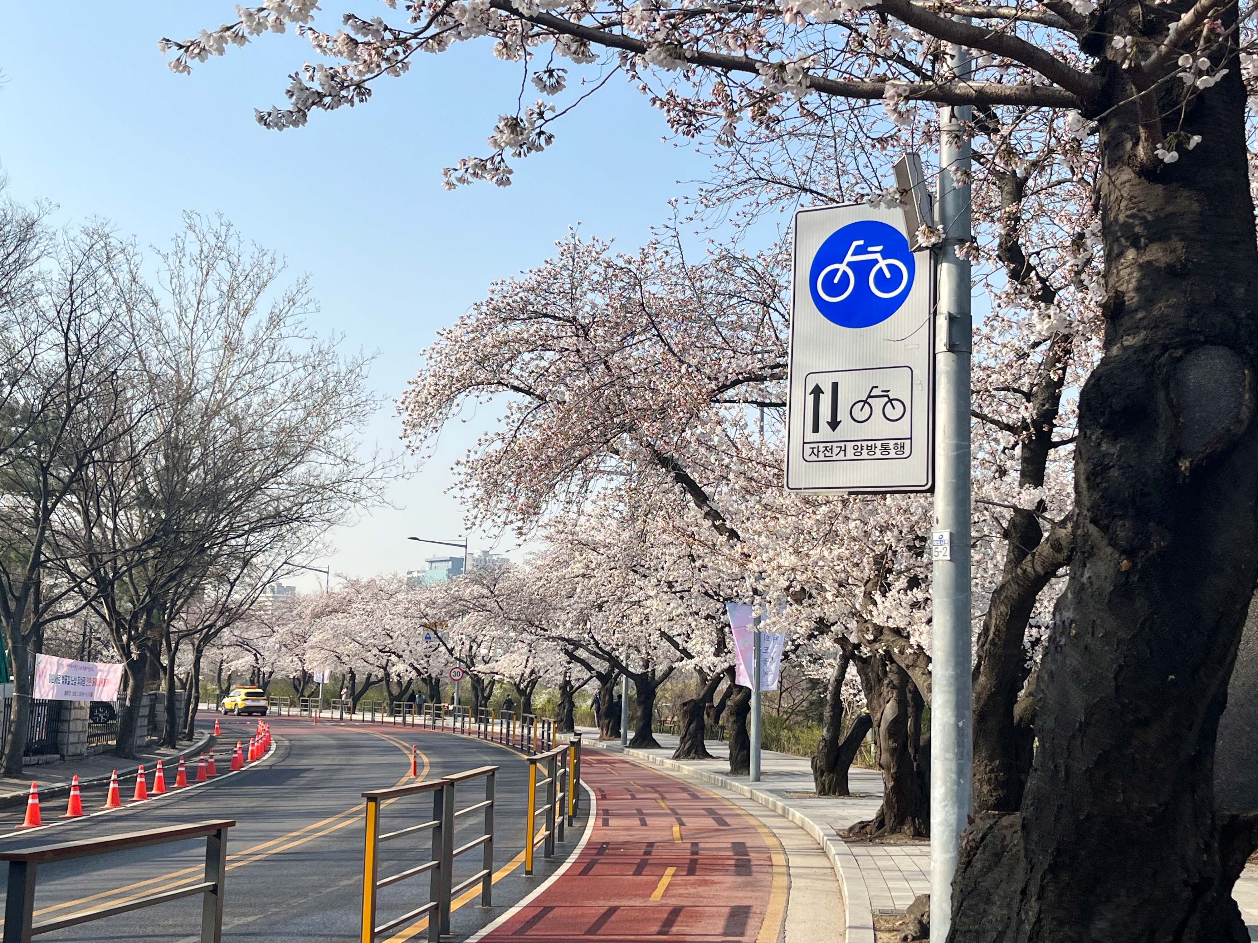 여의도 윤중로는 4월 첫째 주 주말이 가장 절정일 것 같은데요. 윤중로 일대는 물론 여의도 공원 부근까지 내려와 벚꽃을 즐겨 보세요. 사실은 평일 오전 시간대가 가장 붐비지 않게 벚꽃과 사람을 담을 수 있는 시기일 것 같은데요. 강변서재와 벚꽃놀이를 한 큐에 즐기는 코스로 추천드립니다.
