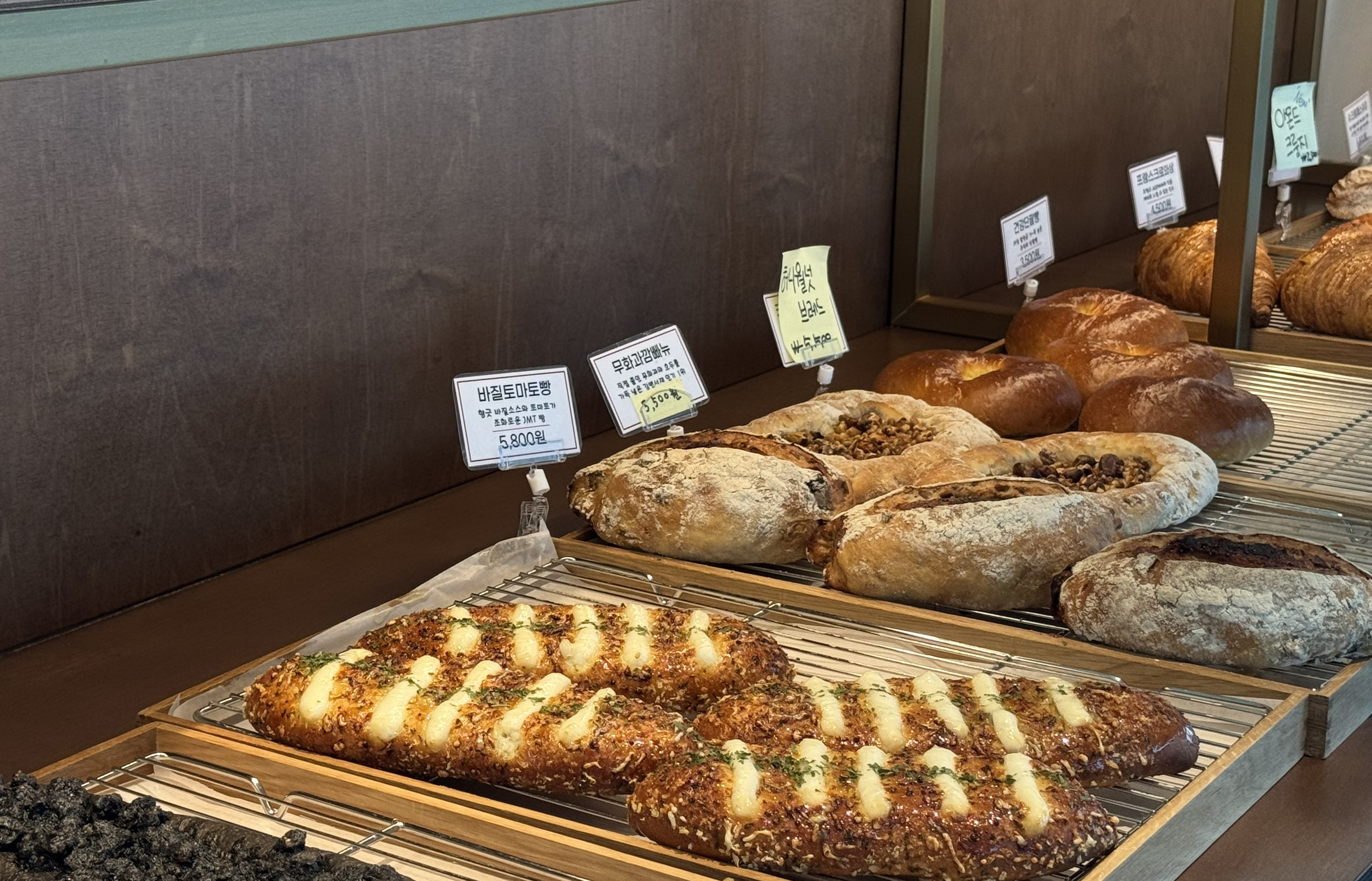 매일 아침 직접 파티쉐가 구워내는 빵이라 그런지 엄청 따뜻하고 맛이 좋았어요. 특히 ‘먹물크런치’는 꼭 추천드립니다. 검정색으로 먹물이 입혀진 빵인데 속에는 일반 크림치즈나 체다치즈가 아닌 모짜렐라 치즈가 들어 있어 가장 특색있는 메뉴랍니다.