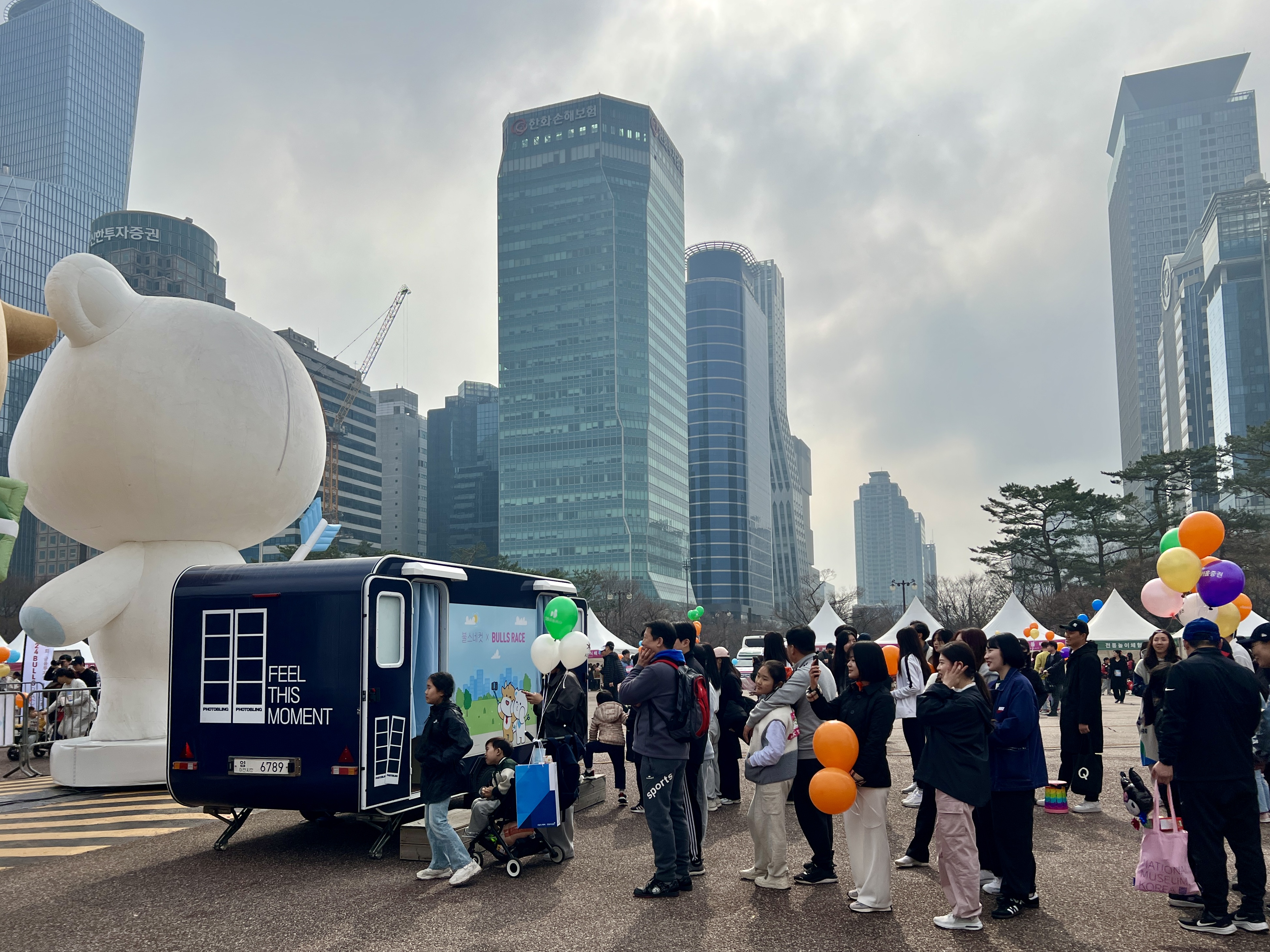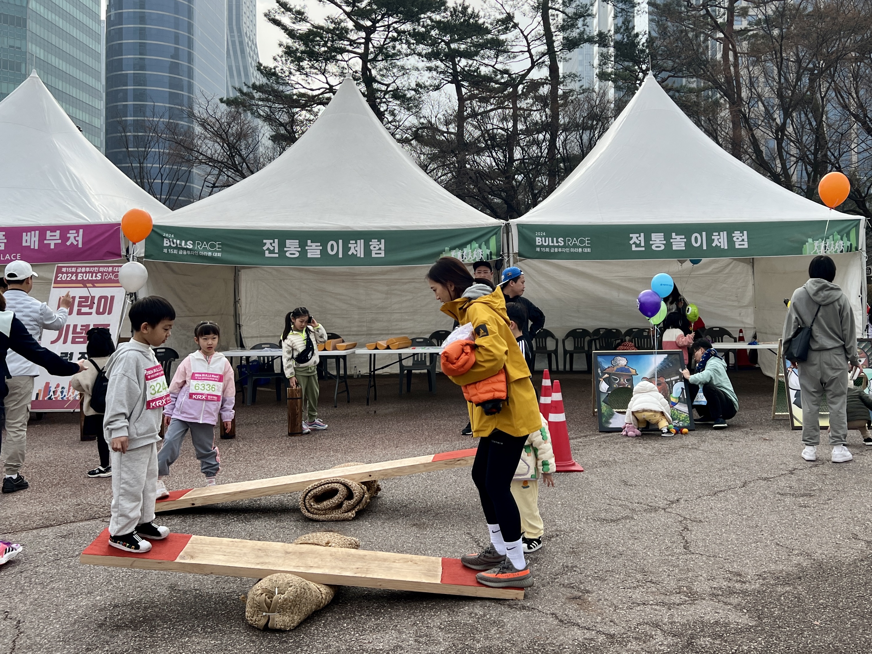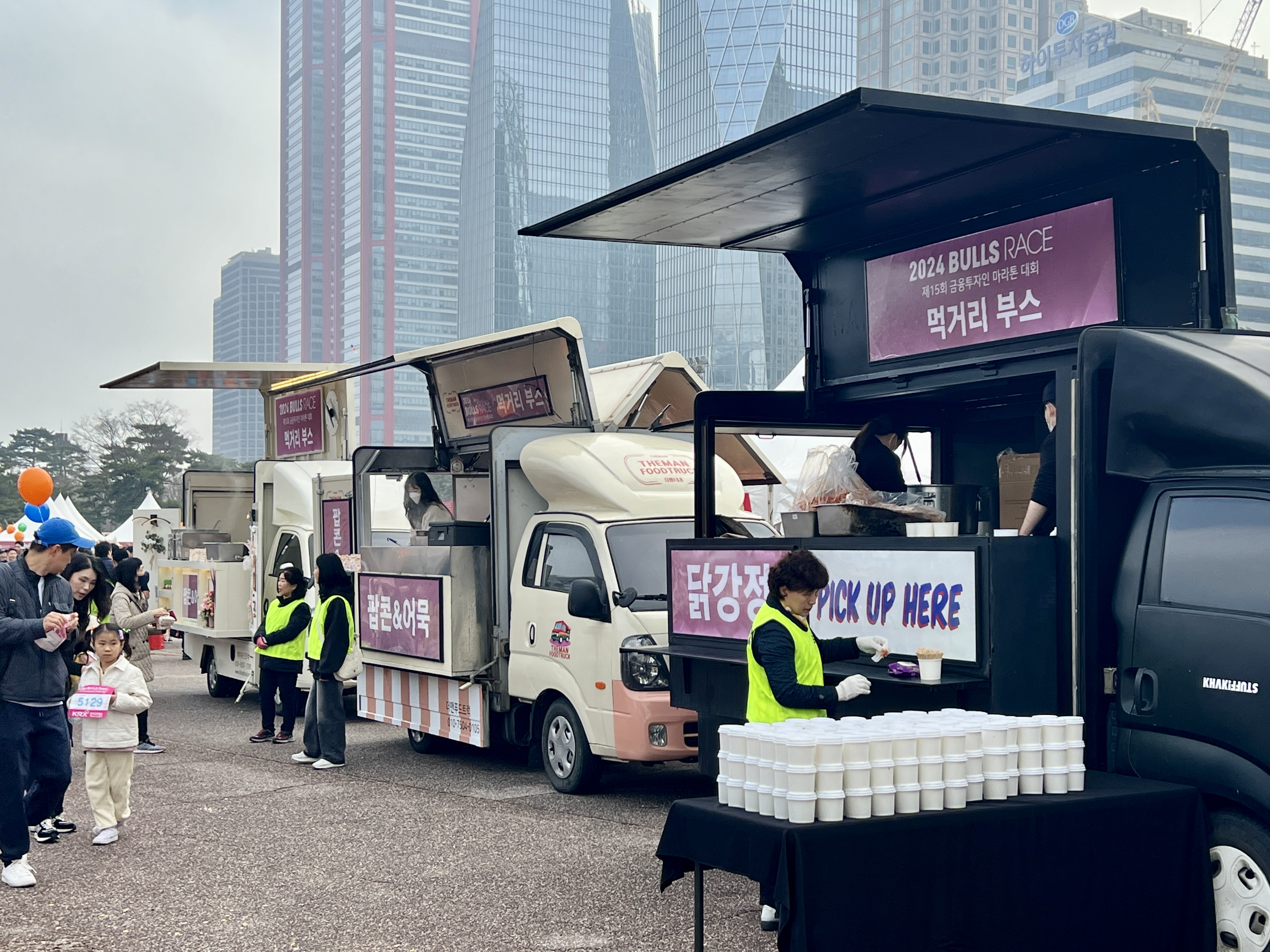 다 함께 즐기는 먹거리 마당에는 푸드트럭이 닭강정, 어묵, 팝콘 등 다채로운 먹거리를 준비해 가족 단위의 발걸음을 멈추게 했다. 헬스케어존에서는 ‘건강한 금융투자인을 만들어가는 불스레이스’를 주제로 스포츠테이핑, 스포츠마사지, 수지침 부스가 마련됐다.