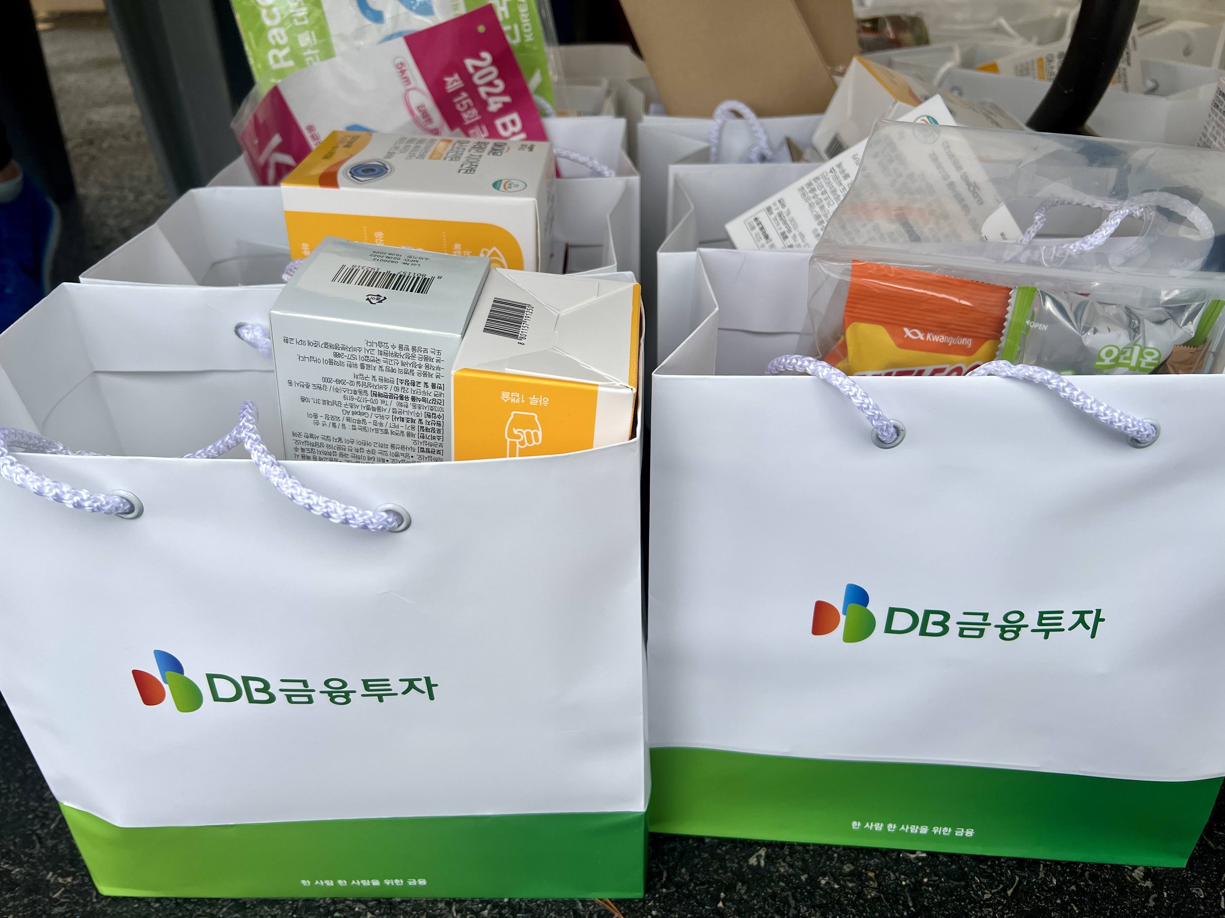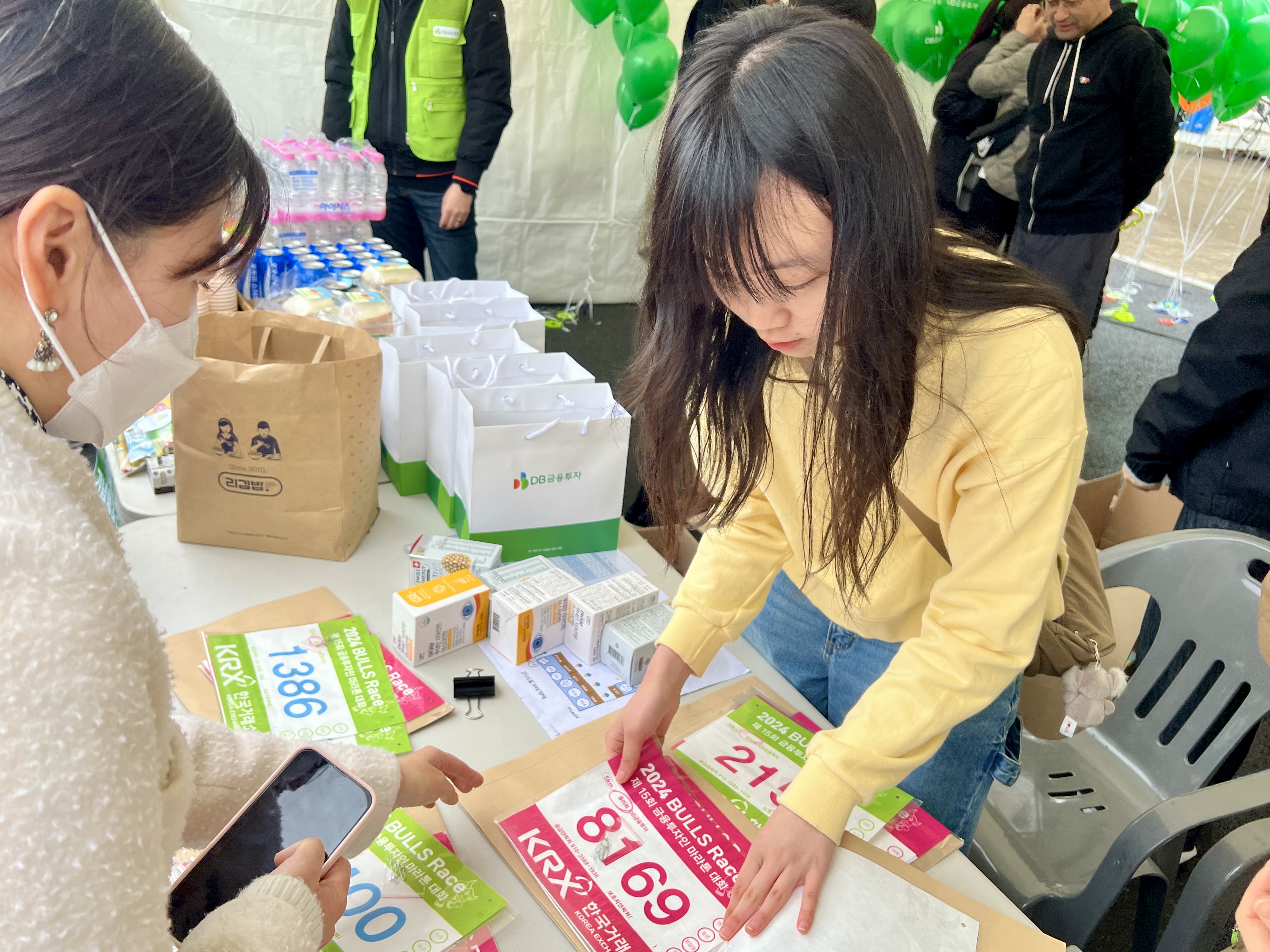 무대 왼쪽에 마련된 DB금융투자 부스에서 등록을 마친 참가자는 간식과 기념품 꾸러미를 받아들고, 삼삼오오 모여 사진을 찍거나 서로 번호표를 붙여주며 즐겁게 담소를 나눴다. DB 주니어 보드 ‘DYB(DB Young Board)’에서는 참가자에게 영양제 세트를, 부스를 찾은 어린이에게는 다이어리·문구 세트를 현장에서 나눠줬다.
