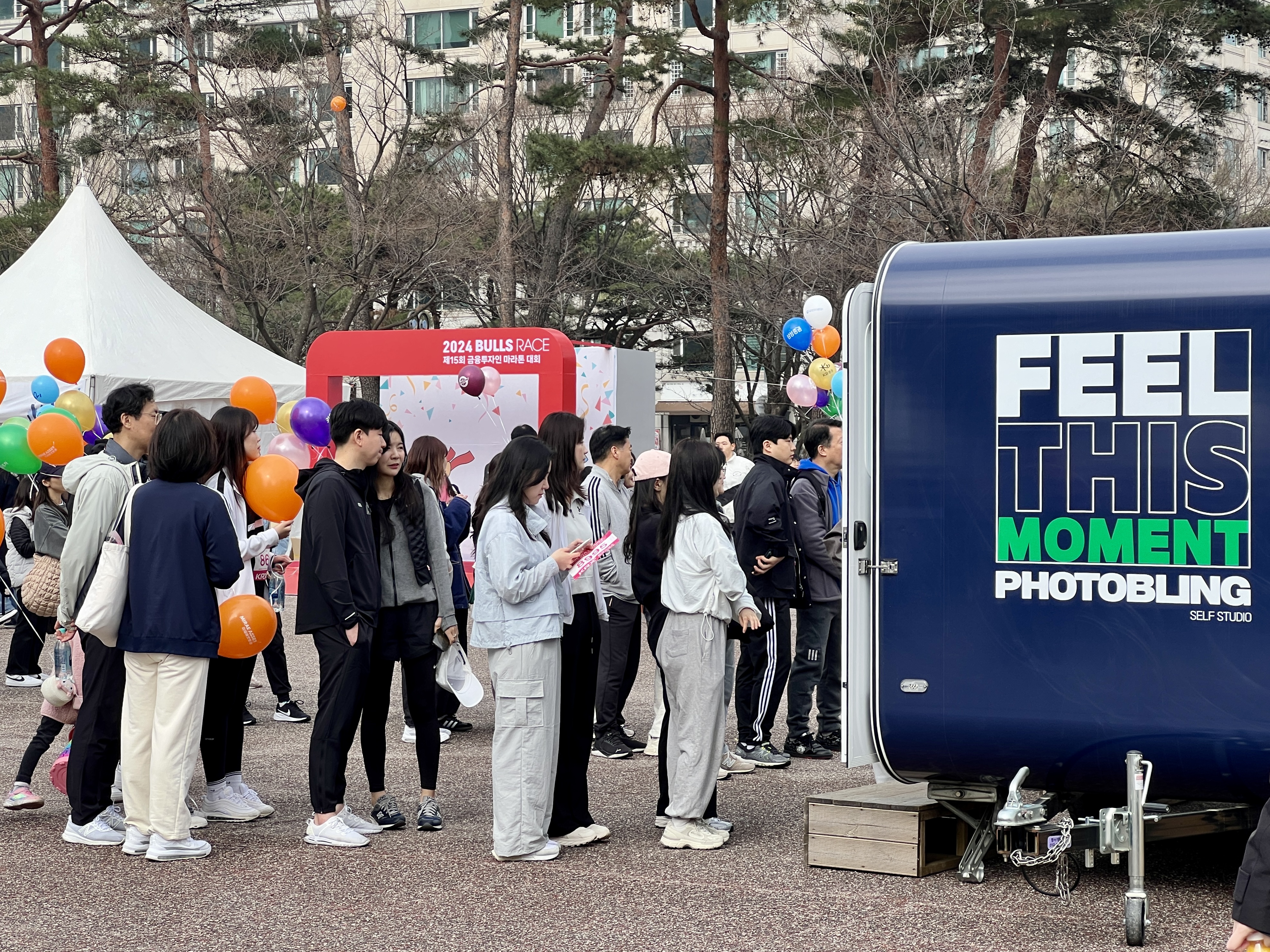 직장 동료와 즉석 사진을 찍은 인사팀 임정은 과장은 “불스 레이스에 처음 참가했는데, 분위기가 화기애애하고 직원들을 회사 밖에서 보니 새롭고 즐거워요.”라며 뿌듯한 표정으로 번호표를 가슴까지 올려 보였다