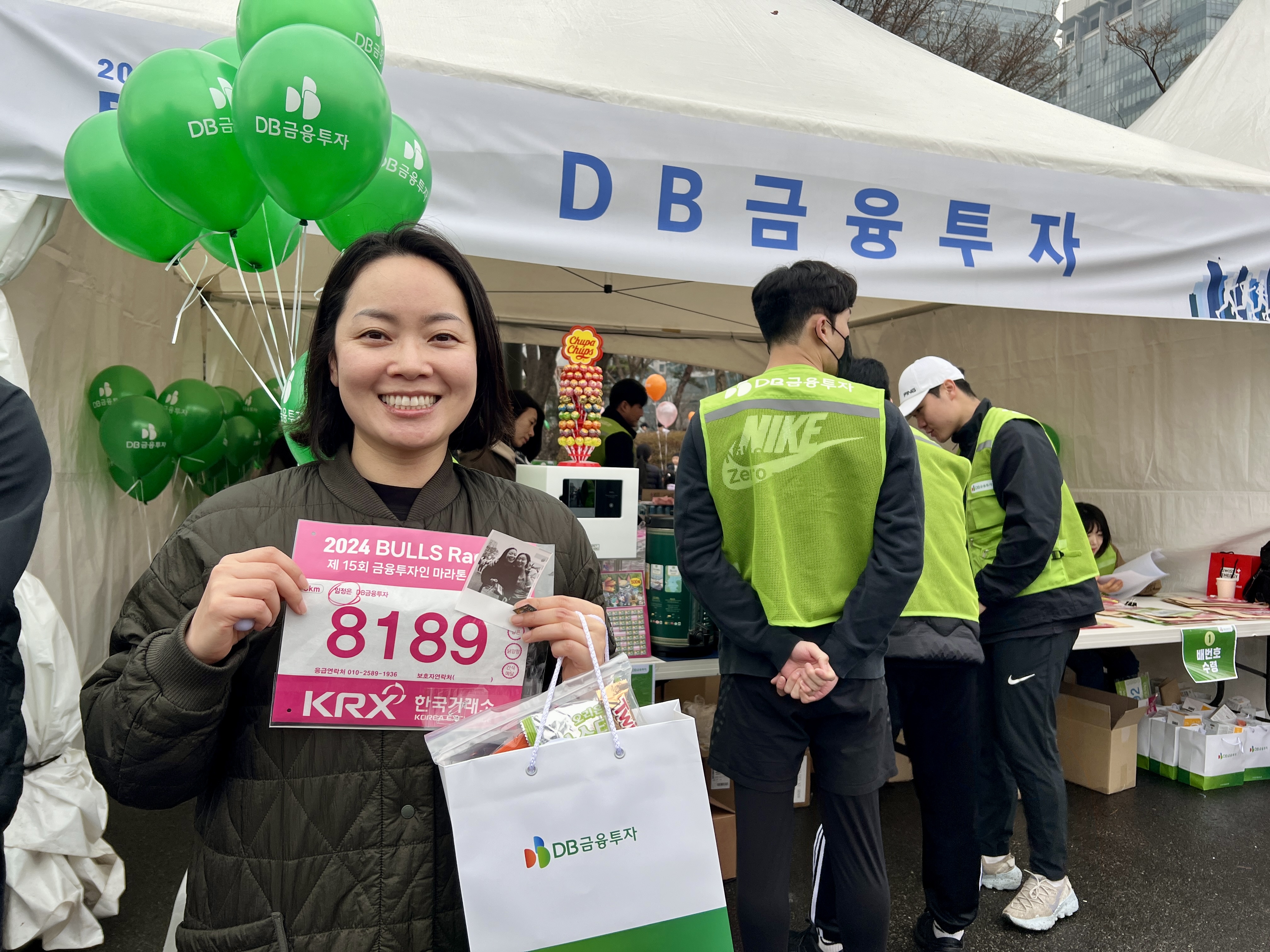 DB금융투자 부스 휴게 공간에서 레이스를 준비 중인 DB 가족들을 만났다.