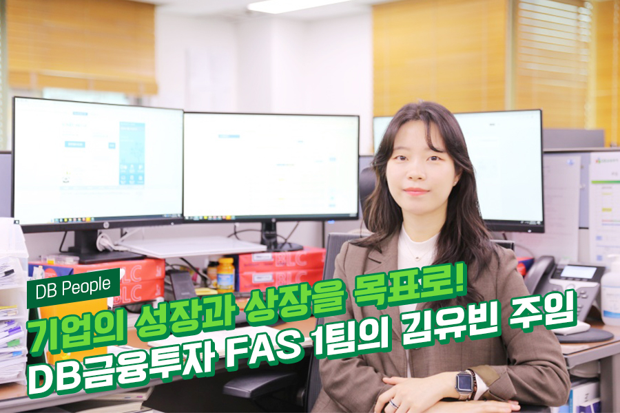 안녕하세요, DB금융투자 FAS1팀 김유빈 주임입니다. 2022년 7월 입사하여 1년 7개월째 근무 중입니다.