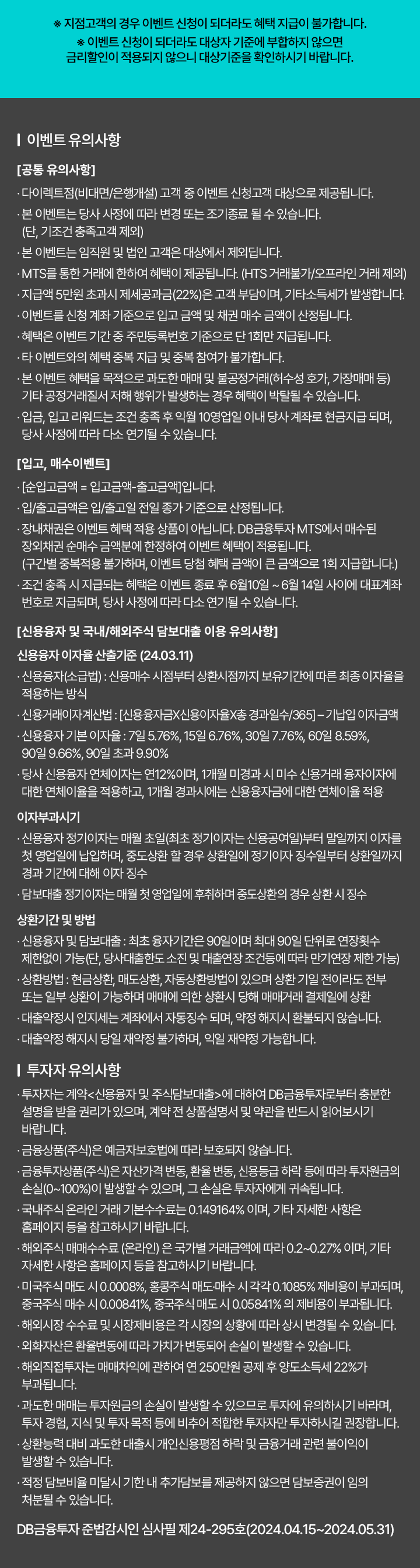 | DB금융투자, 신용융자 & 대출 금리할인 이벤트 (0) | 2024.04.01 |