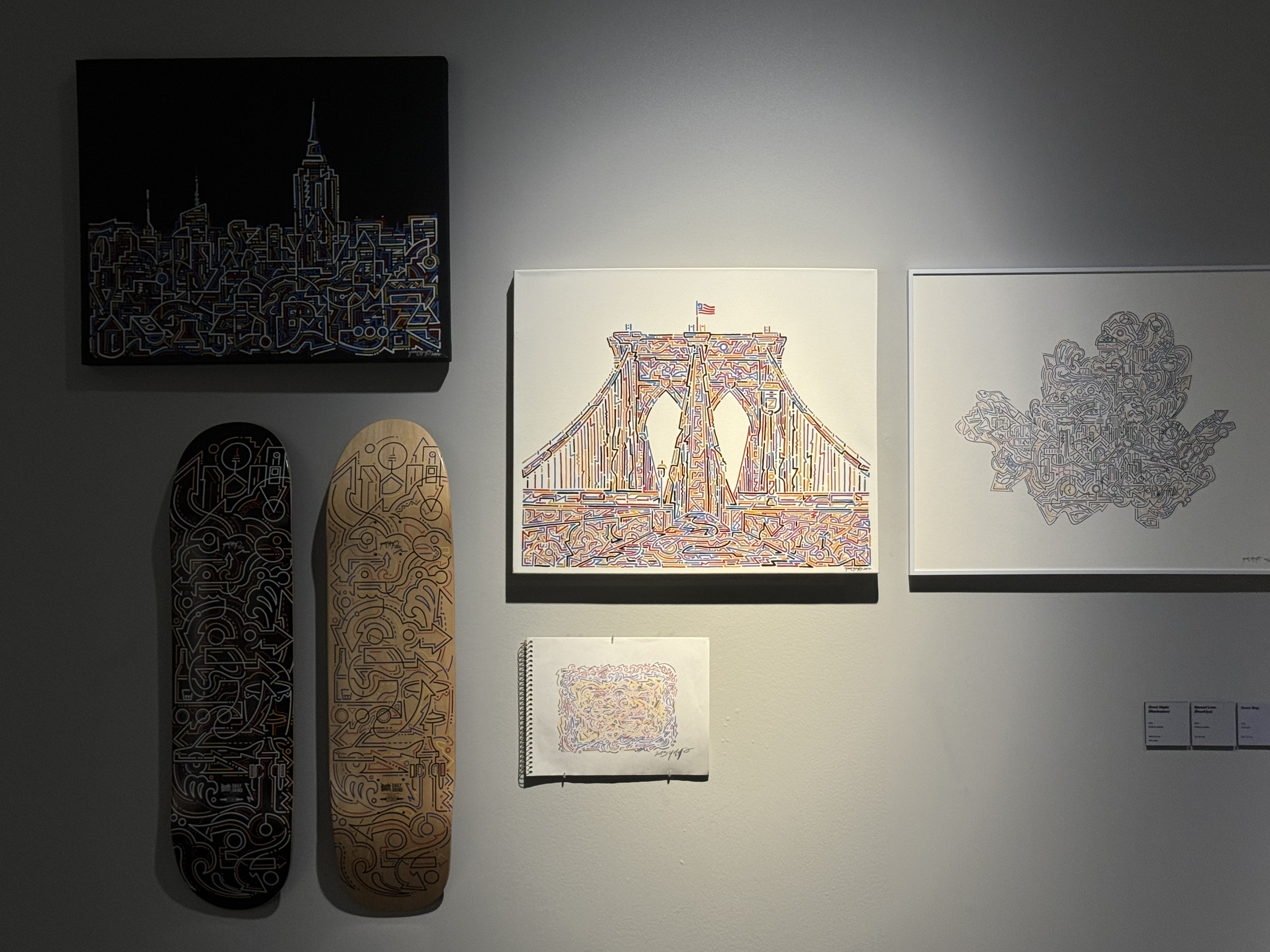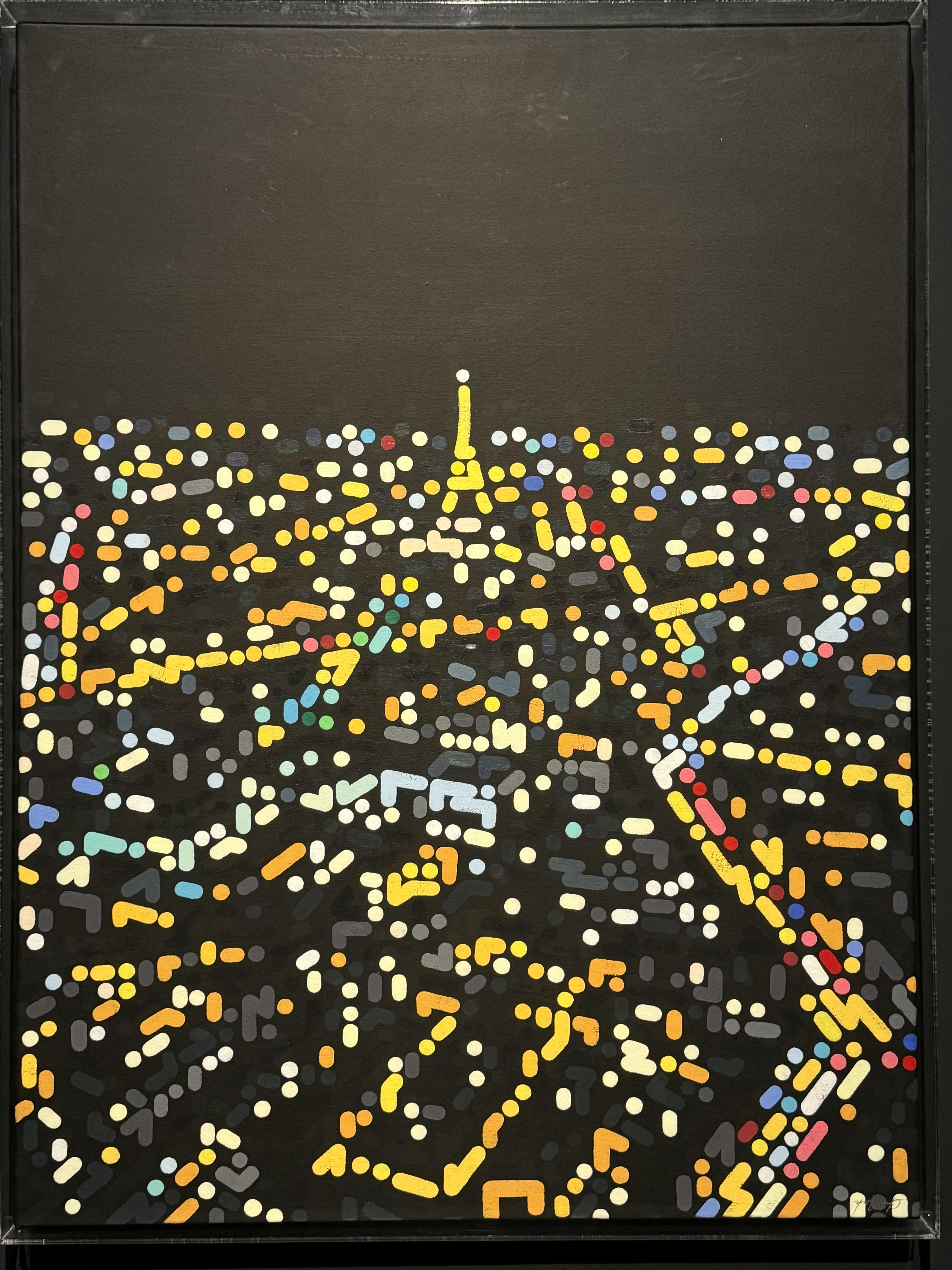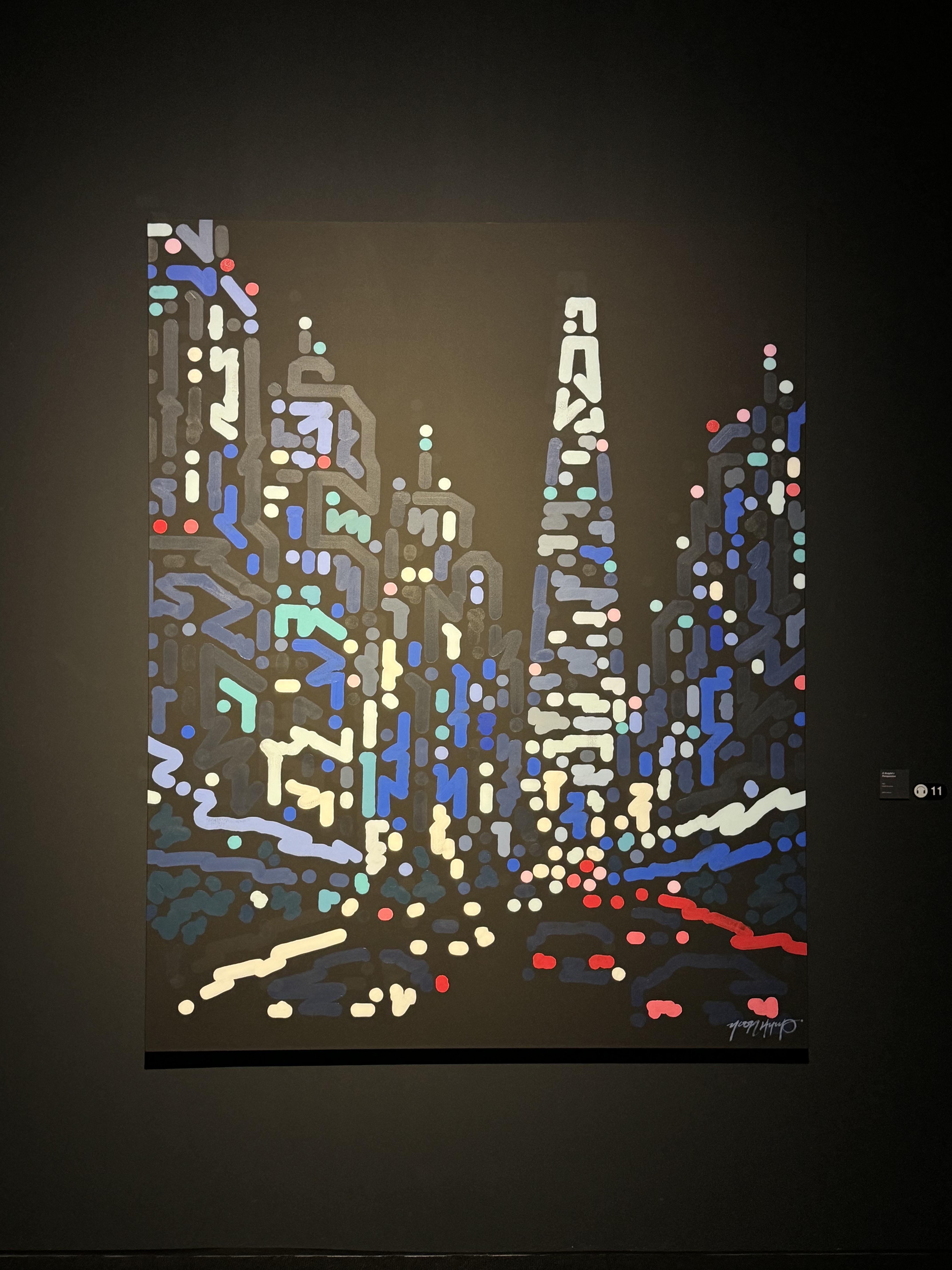 작가의 도시는 일상생활이 있는 환경이자 에너지와 문화가 담겨있는 영감의 원천입니다. 또한 새로운 발견이자 환상의 장소인 도시를 작품 속에서 꿈과 희망, 그리움과 야망 등이 결집된 존재로 표현합니다. [리듬 시티 Rhythm City]속 작품은 주로 제2의 고향이나 다름없는 뉴욕에서의 순간들을 점과 선으로 그렸는데요.