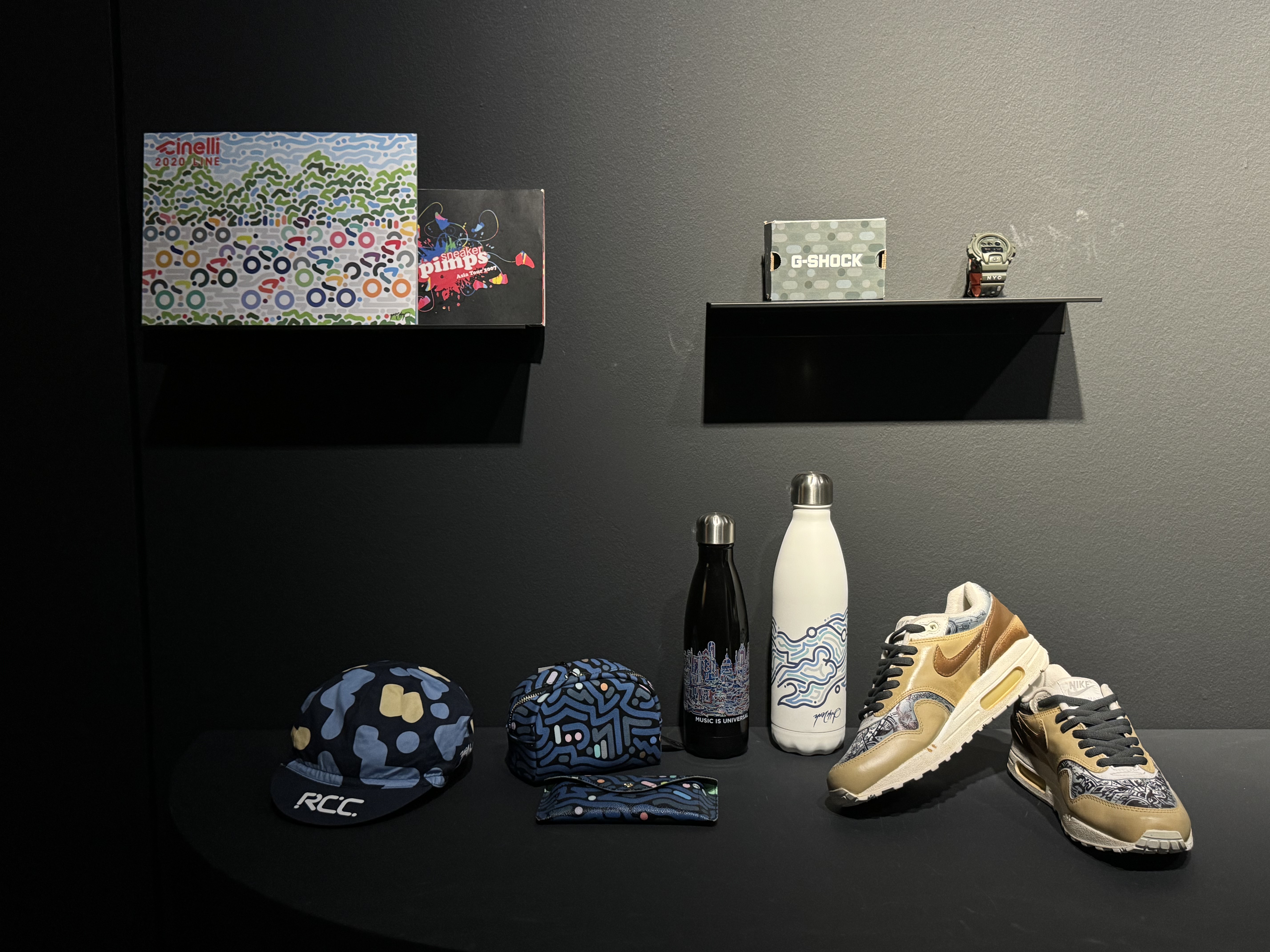 윤협은 2004년부터 현재까지 다양한 브랜드와의 협업을 진행하기도 했다고 하는데요. 2014년 뉴욕 의류 브랜드 랙앤본과의 콜라보를 시작으로 나이키, 헬리녹스, 베어브릭, 바비라운과 유니클로, 메종키츠네 뮤직 까지 50여 개가 넘는 브랜드와의 다양한 협업을 통해 현대미술의 확장을 몸소 다방면으로 보여주었습니다. 어떻게 보면 상업 예술과 순수 예술의 경계를 허물고 그만의 예술 세계를 확고히 자리 잡게 한 활동으로도 볼 수 있는데요. 흔히 주변에서 볼 수 있는 패션, 뷰티 등 다양한 브랜드들을 이렇게 작가와의 콜라보로 한 자리에서 만나볼 수 있다는 것도 재미있습니다.