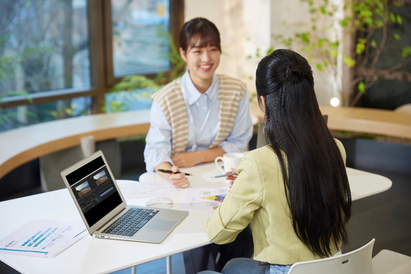 면접관의 태도는 입사를 결정하는 데 큰 영향을 미쳐요. MZ세대 면접관은 일종의 퍼포먼스처럼 보일 수도 있지만, 지원자의 눈높이에서 접근하는 질문과 피드백으로 면접장의 경직된 분위기를 완화할 뿐만 아니라 기성세대에게서는 볼 수 없었던 참신한 시각을 더 할 수 있어요.