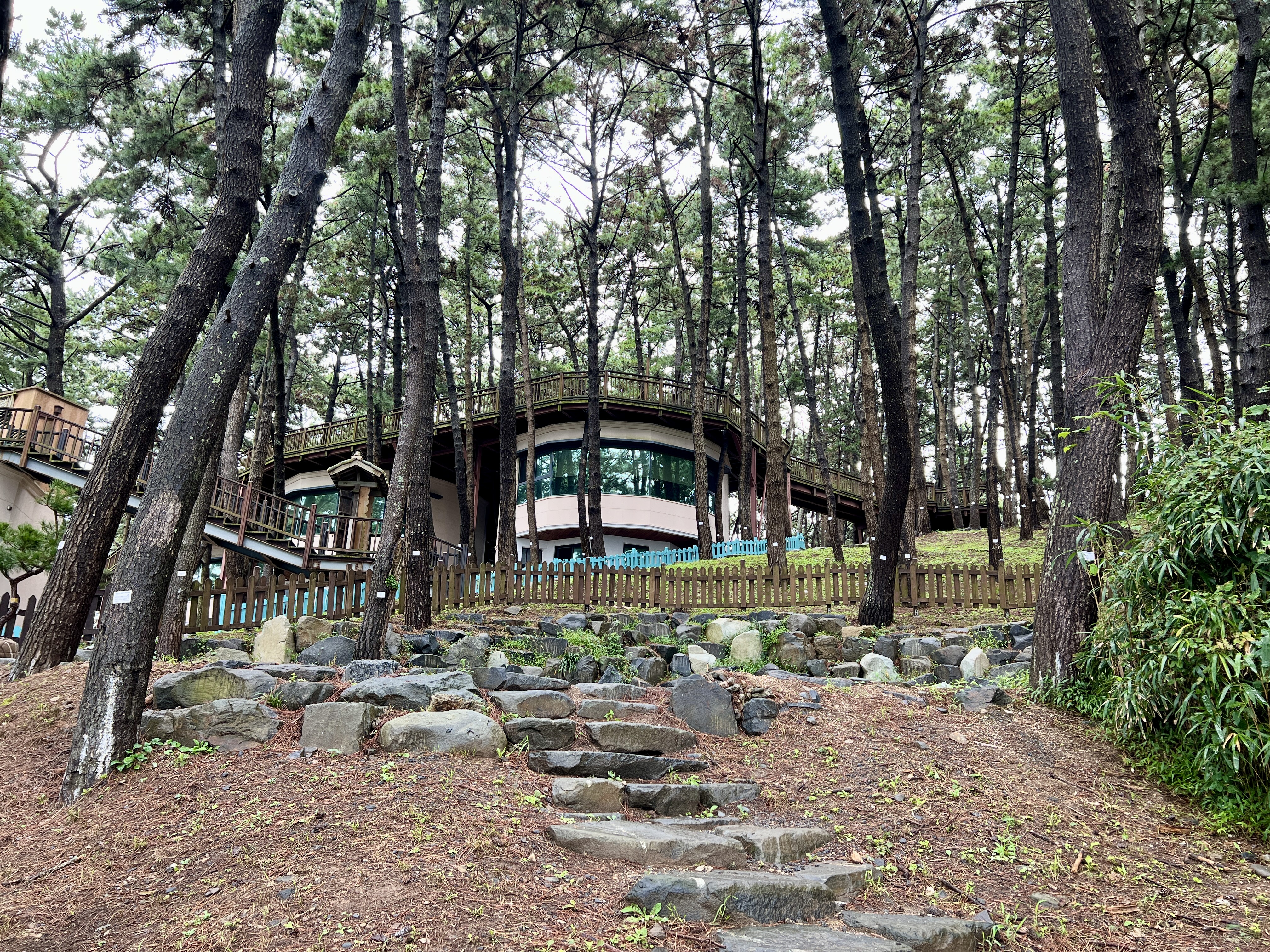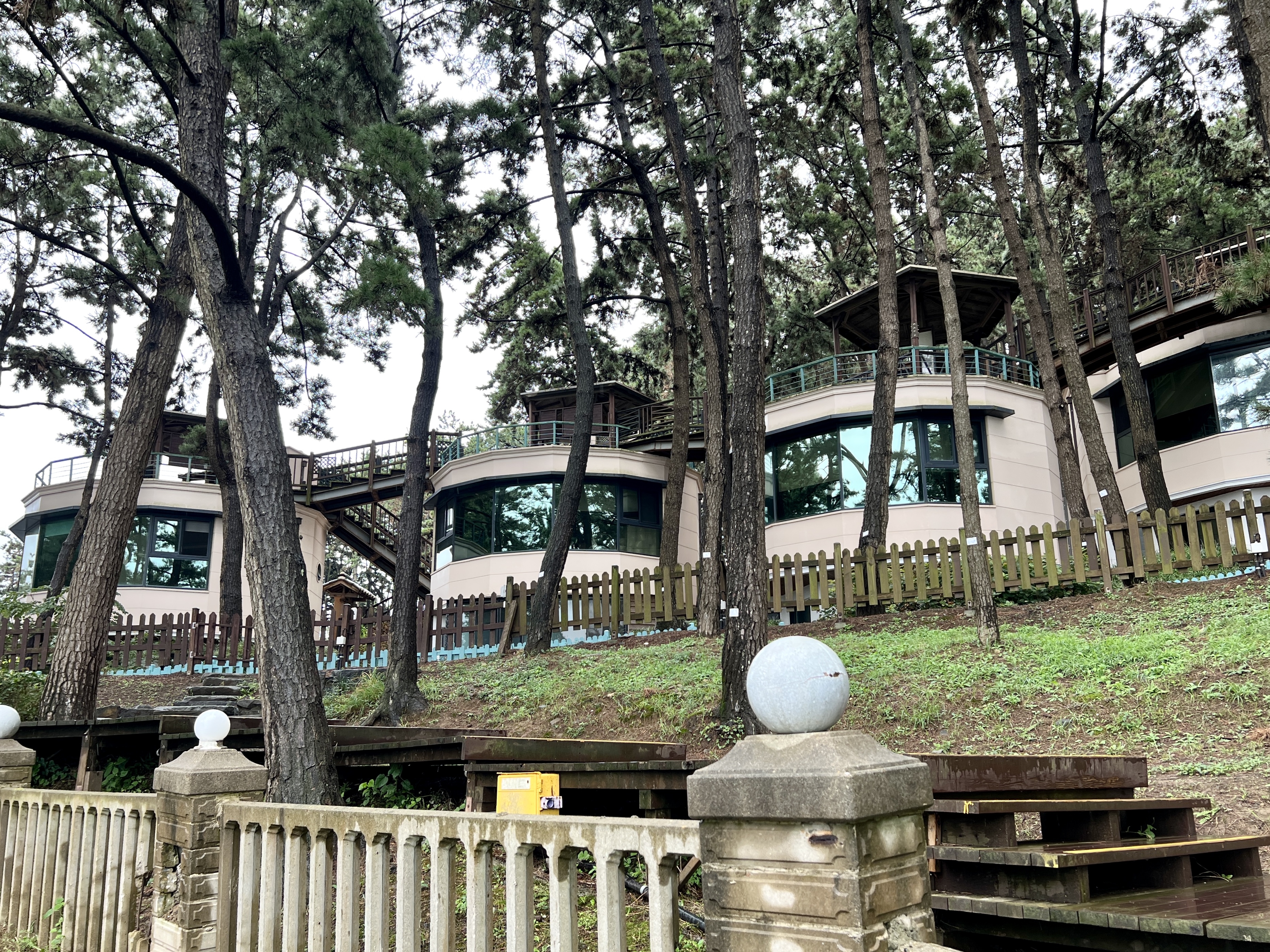 방갈로의 건축 스타일에 대해서는 호불호가 갈리는 편이에요. 모양이 비행선 같다는 사람도 있죠. 하지만 1990년대 당시 빌라 계획에서 주안점을 둔 것은 솔숲에 있던 나무들을 해치지 않고 건물을 배치한다는 방침이었어요. 원래 숲이었던 지역에 나무를 베지 않고 숙박 시설을 만드는 것이 매우 힘들었어요.