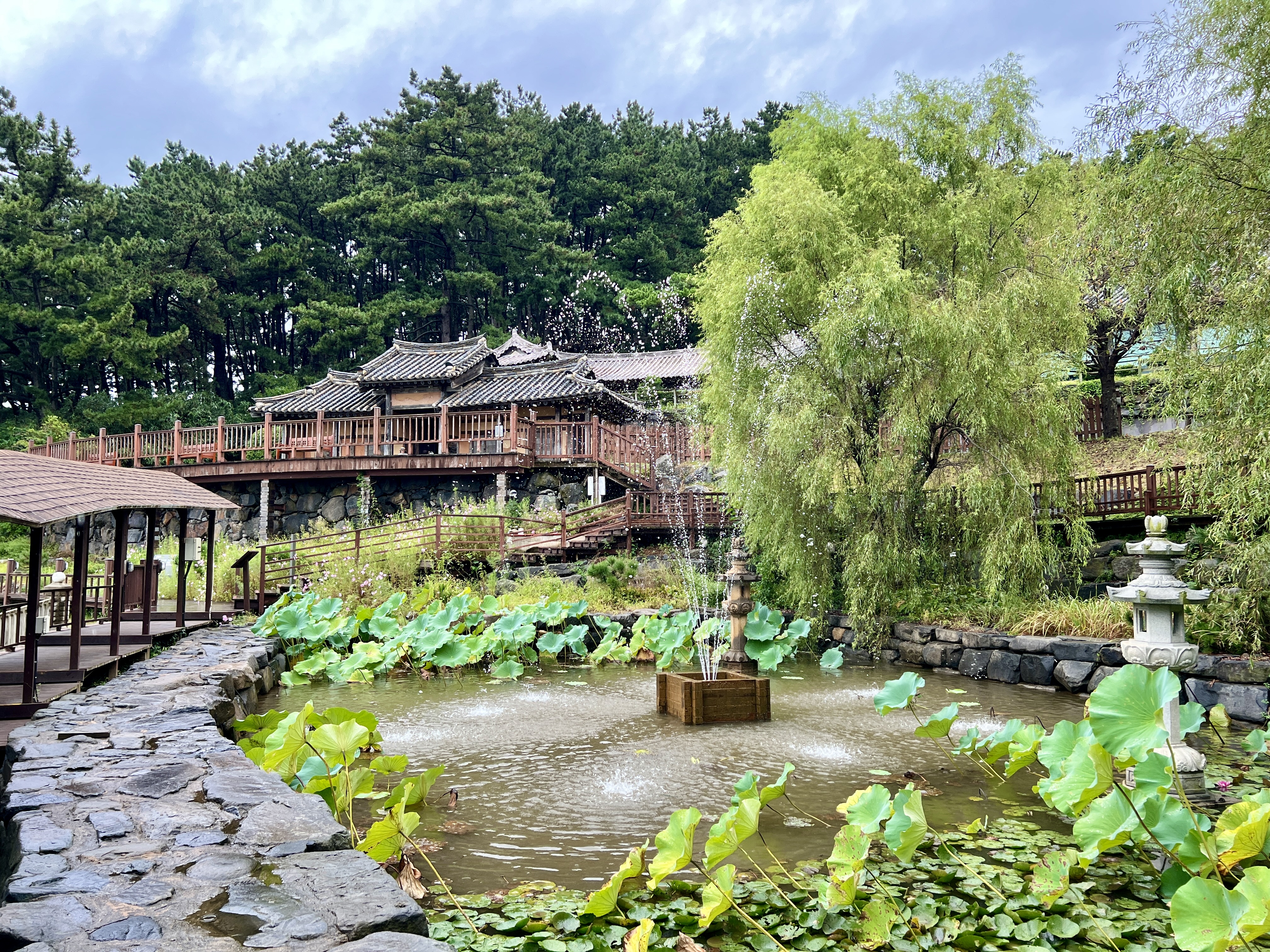 현대 주거의 특징이라 할 수 있는 바다를 바라보는 워터프런트 조망과 고전 한옥이 합쳐진 느낌이 절묘해요. 먼 길을 이사 온 한옥들이지만, 여기 상화원에서 제대로 된 고향을 찾은 듯해요.