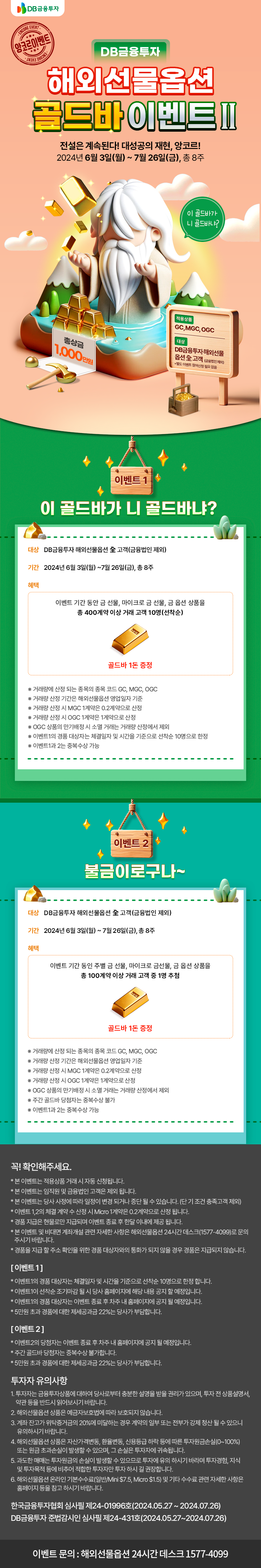 이벤트 기간 동안 금 선물, 마이크로 금 선물, 금 옵션 상품을