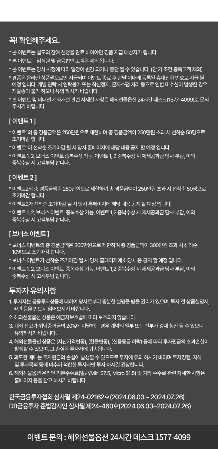 3. 미국지수 관련 선물 또는 옵션 상품을 500계약 이상 거래고객 백화점상품권 30만원 증정