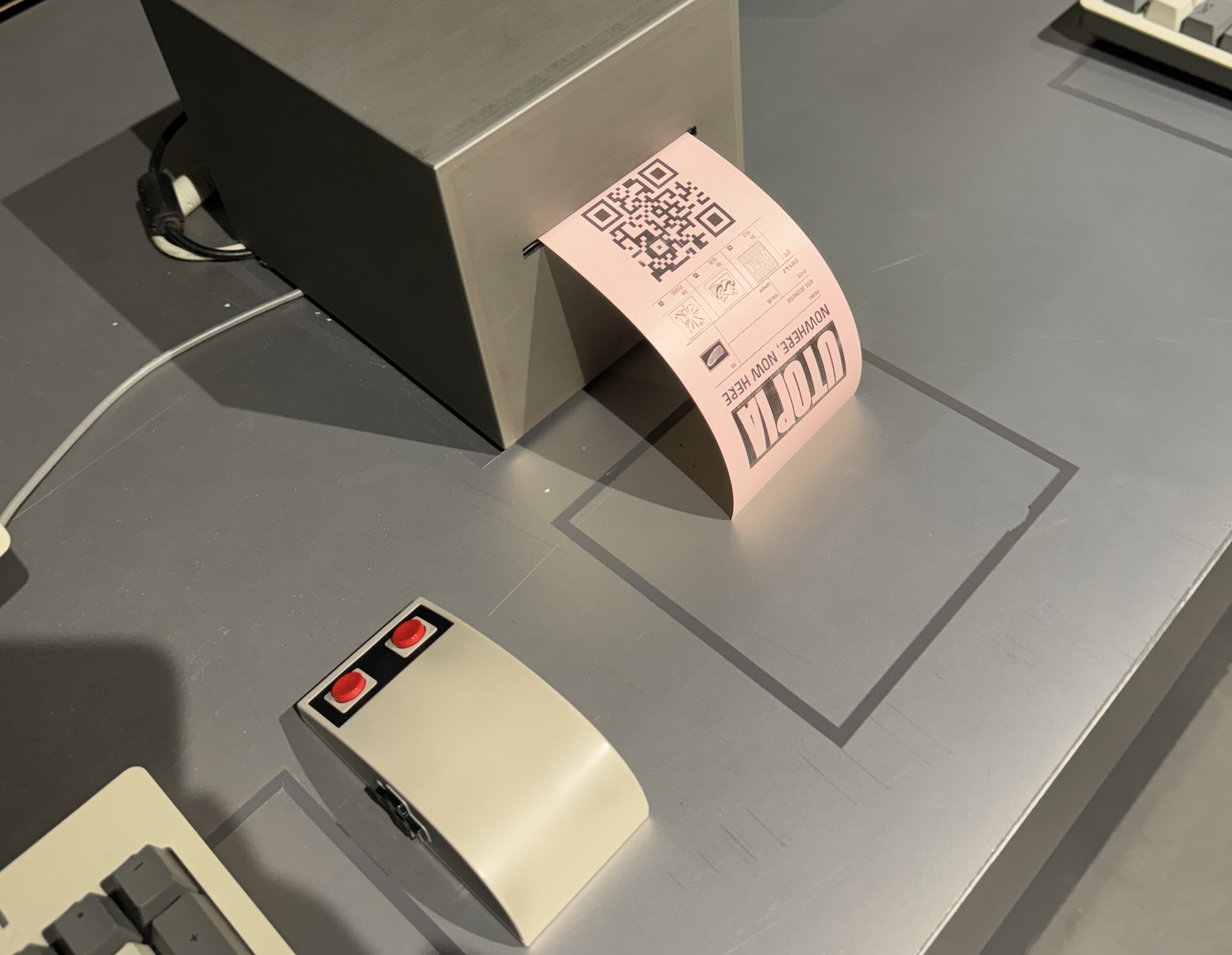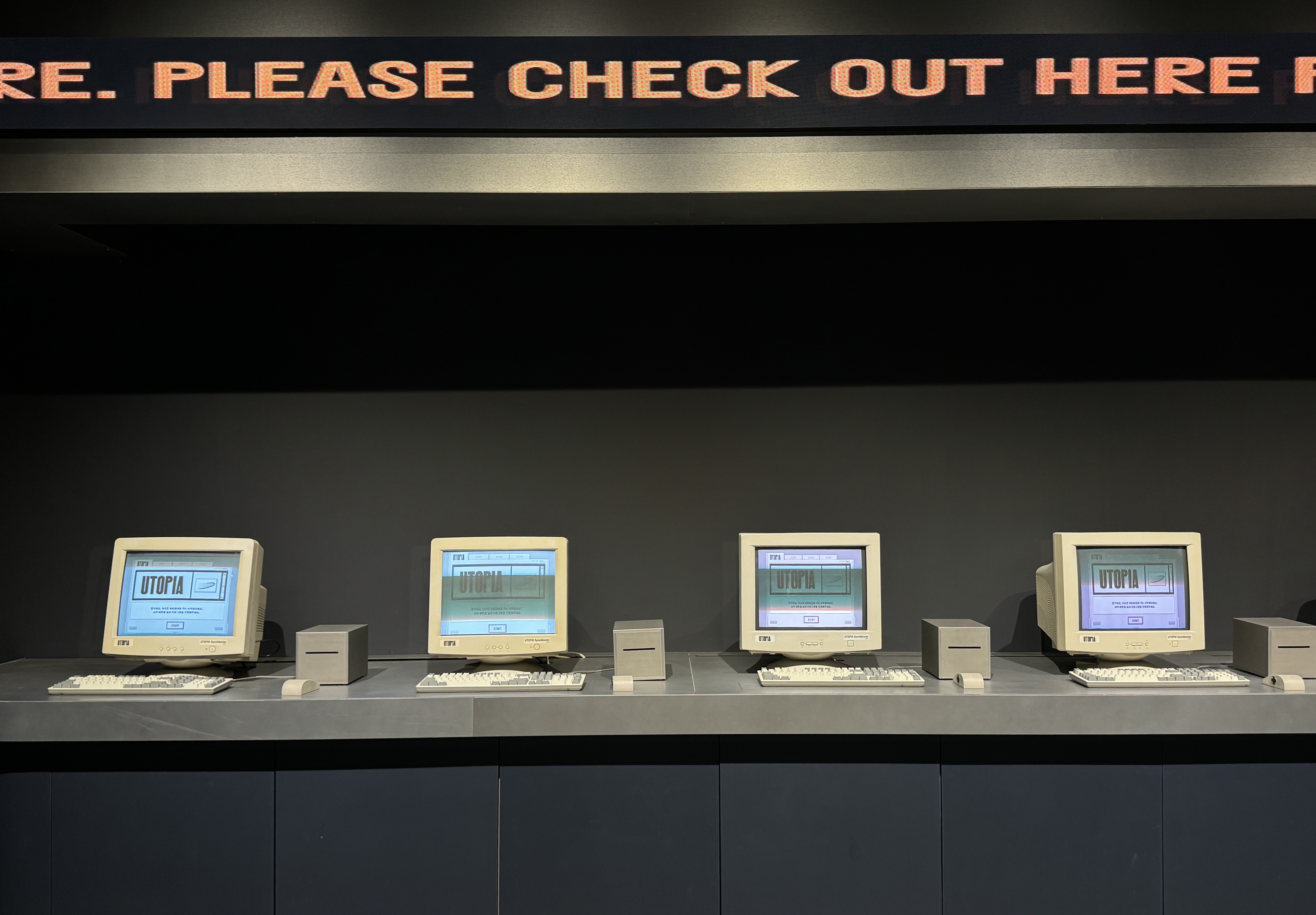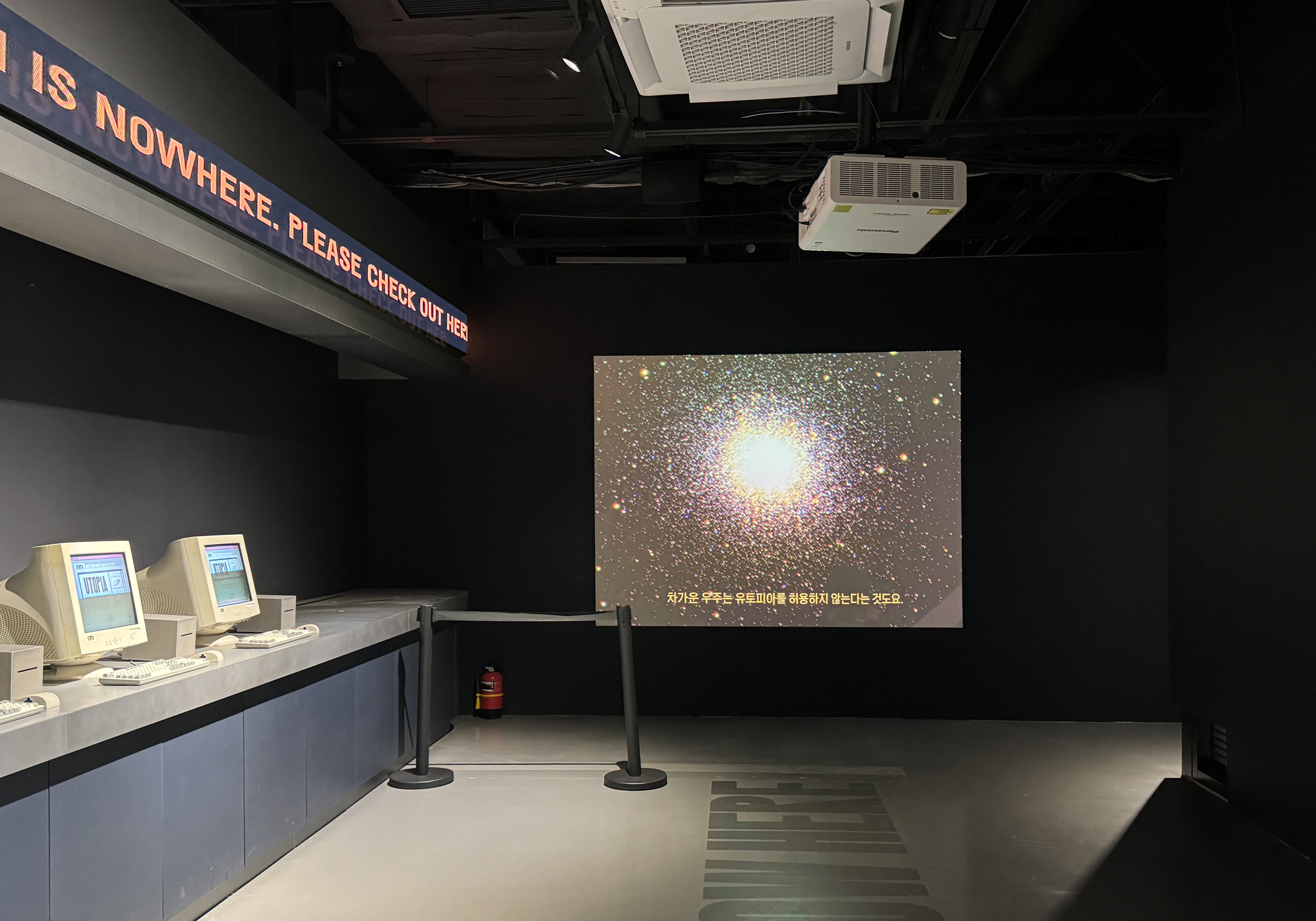 입장과 함께 보이는 것은 몇 대의 컴퓨터. 이곳에서 우리는 유토피아로 향하는 티켓을 먼저 끊은 후 전시 관람을 시작하게 됩니다. 내가 꿈꾸는 유토피아의 모습은 어떤 모습인지, 그곳은 내 기억 속에서 어떤 감정을 느끼게 하는지 먼저 떠올려 보세요. 내가 처음 떠올린 유토피아의 모습과 전시가 끝난 후에 내가 생각하는 유토피아를 비교할 수 있습니다.
