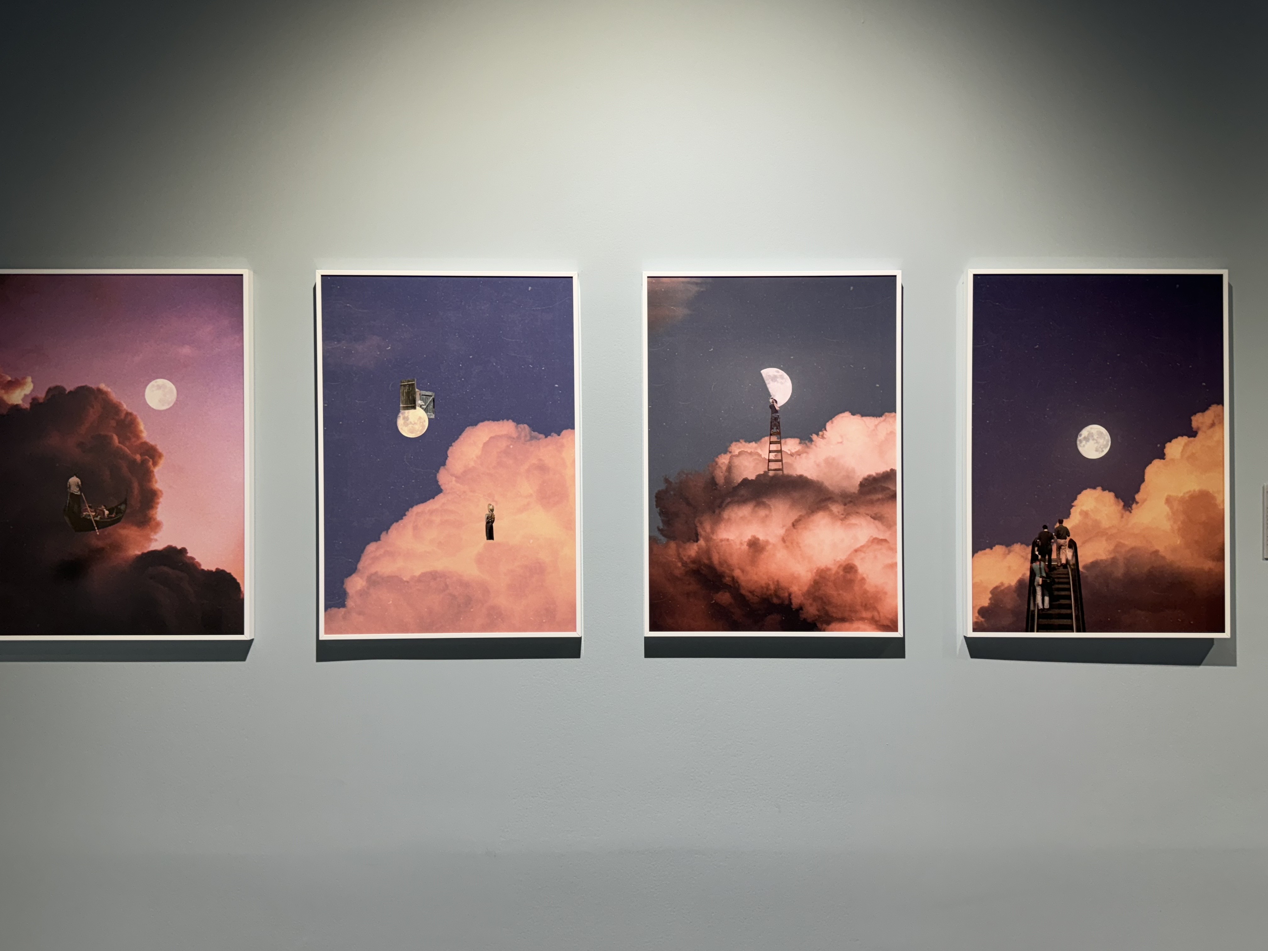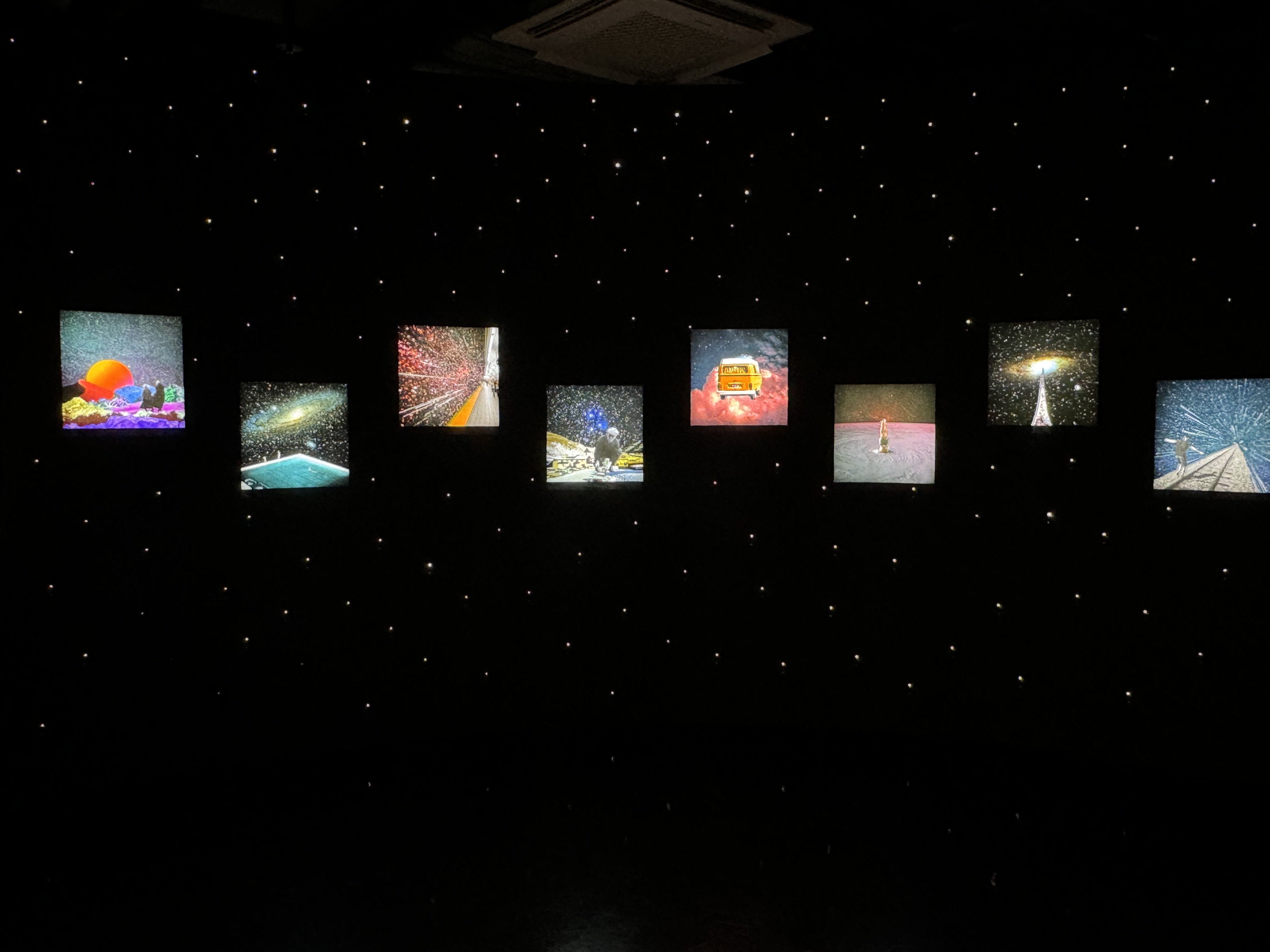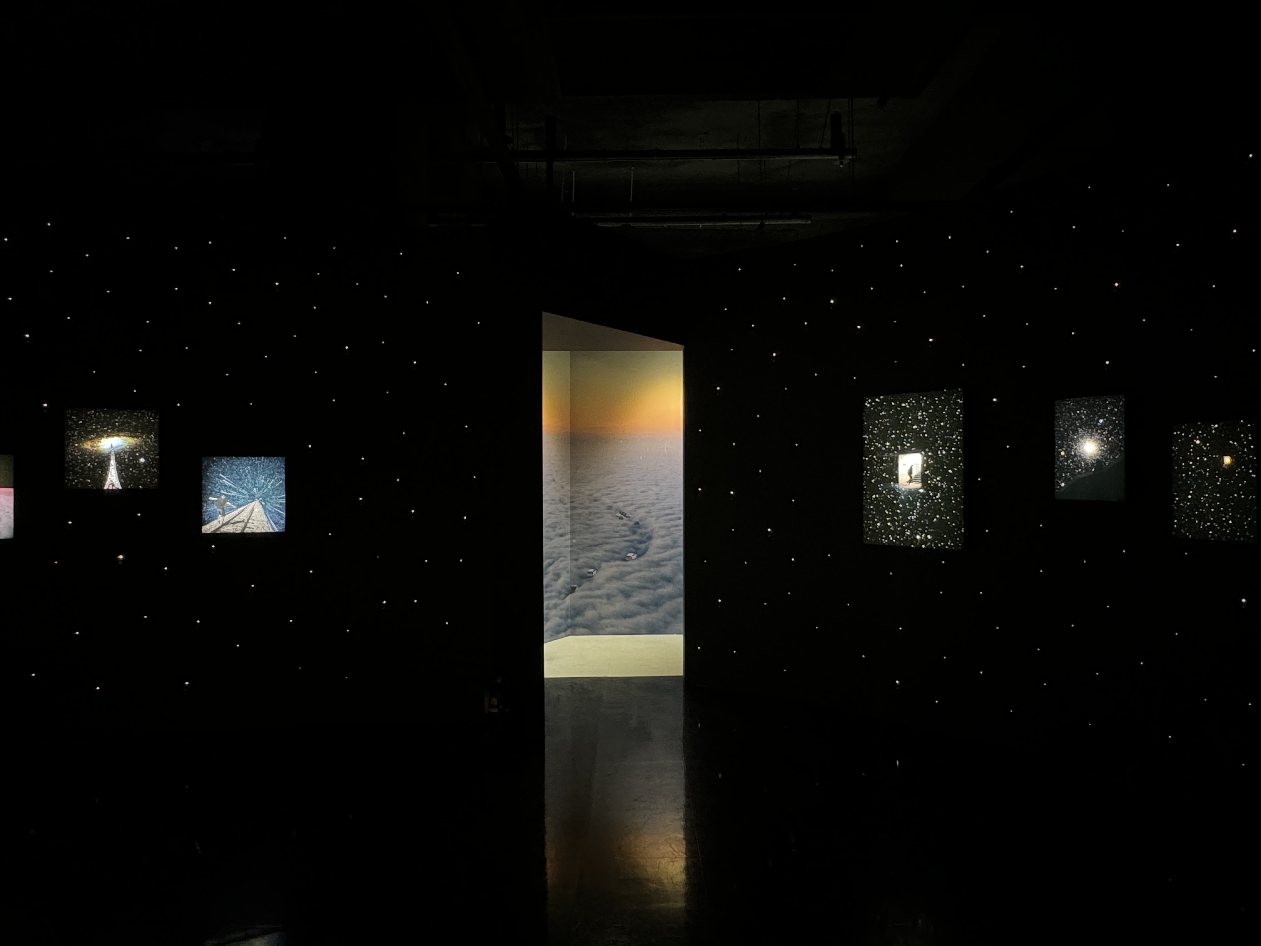 어둠 속에서 반짝이는 별들과 작품이 가득한 공간, 환하게 빛나는 우주 정거장이 펼쳐집니다. 나승준 작가는 이질적인 이미지를 조합하여 새로운 세계를 창조하는 콜라주 작업을 주로 선보입니다. 작가는 수채화와 펜 드로잉 실력에 대한 부족함을 느끼면서, 다른 작업 방식을 찾던 중 콜라주에 흥미를 갖게 되었다고 하는데요.