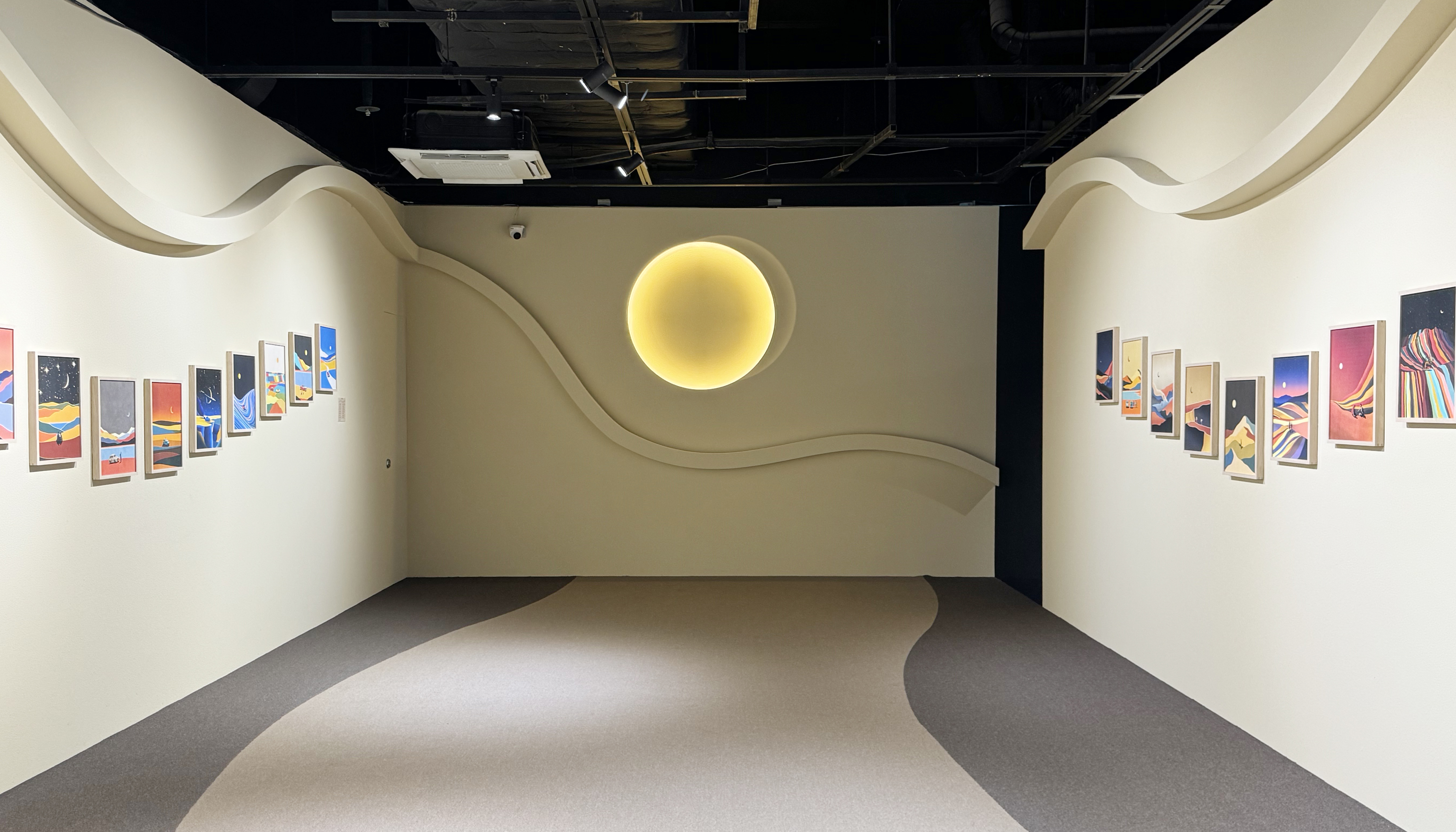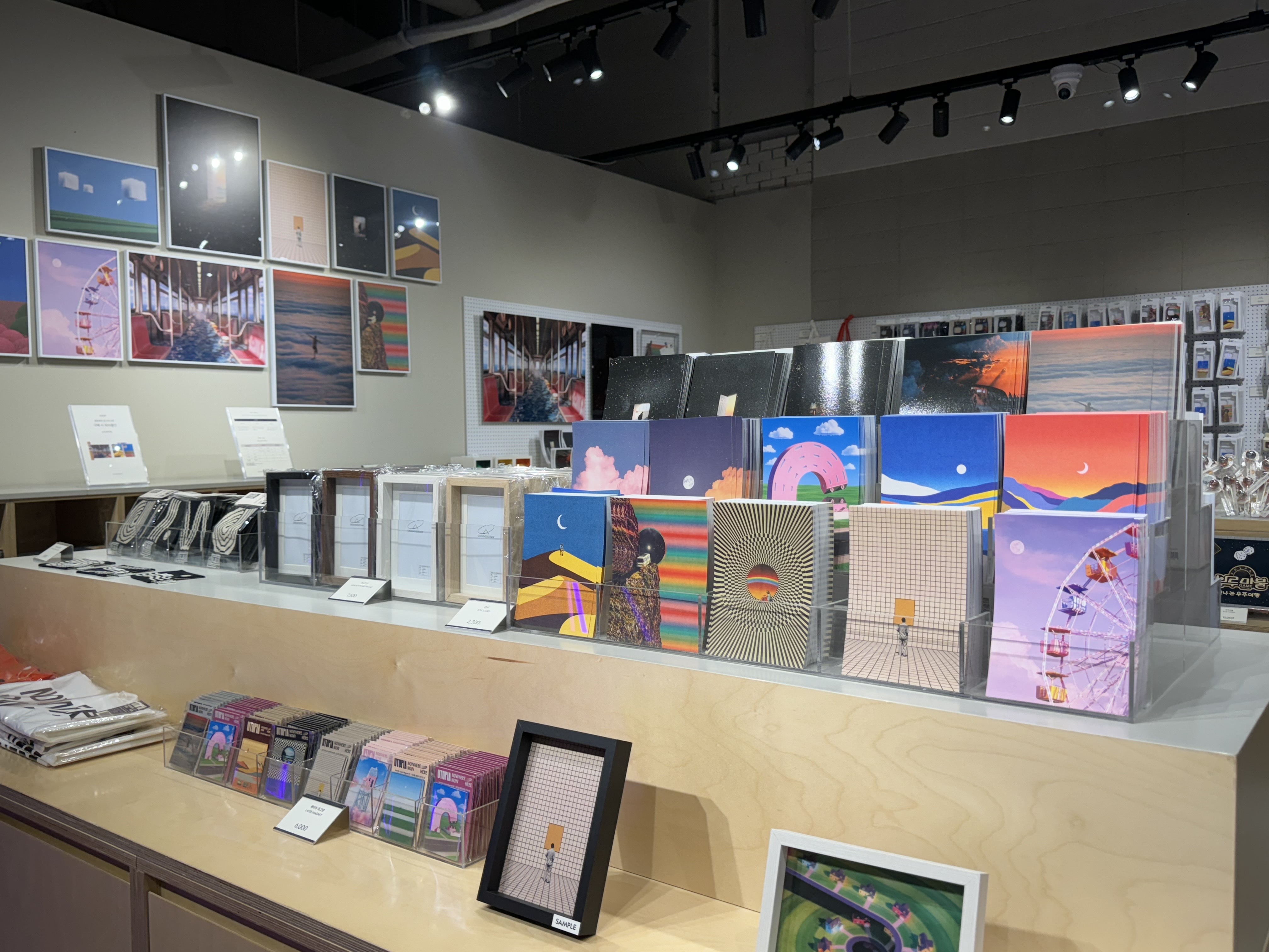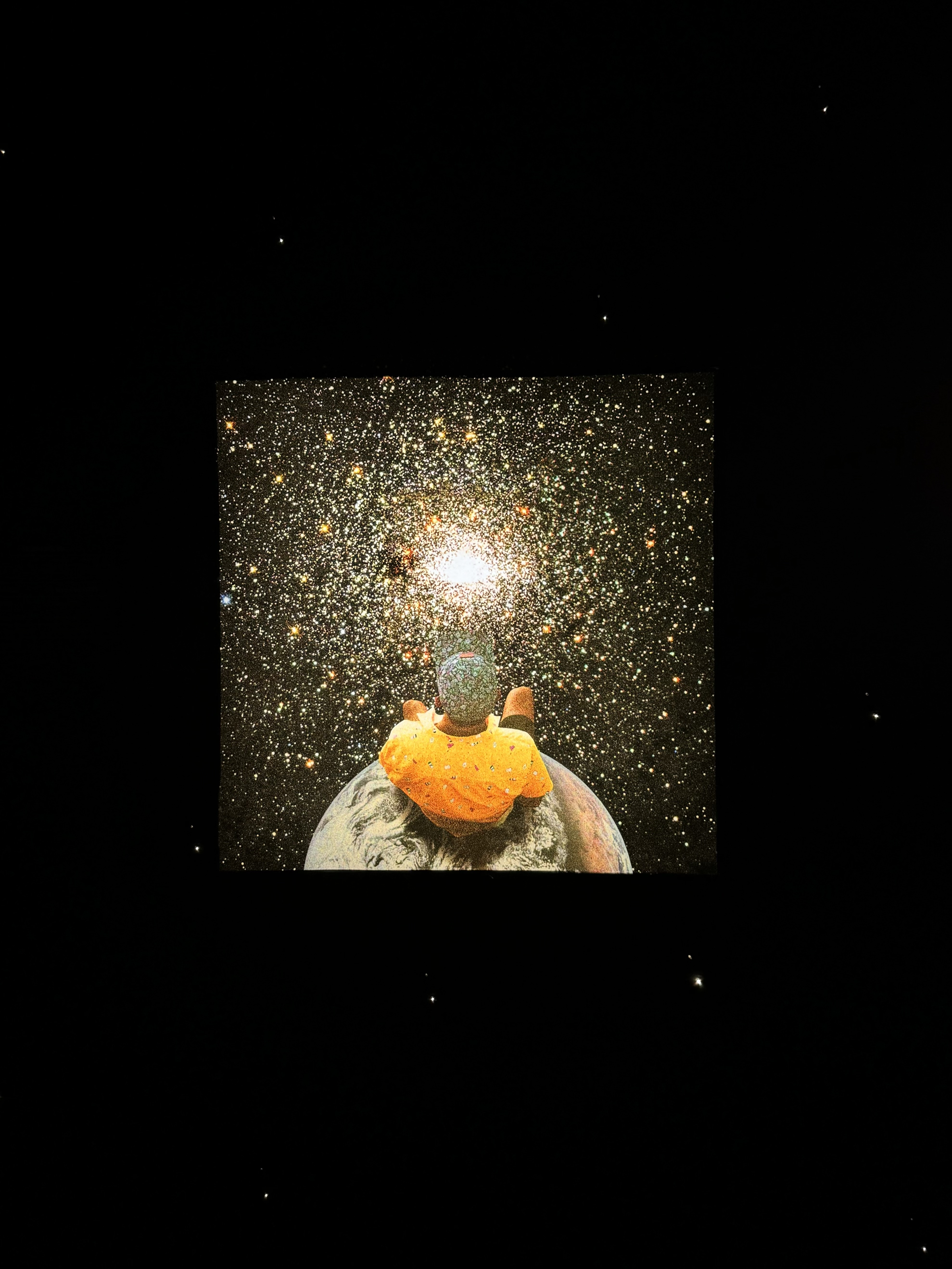 어둠 속에서 반짝이는 별들과 작품이 가득한 공간, 환하게 빛나는 우주 정거장이 펼쳐집니다. 나승준 작가는 이질적인 이미지를 조합하여 새로운 세계를 창조하는 콜라주 작업을 주로 선보입니다. 작가는 수채화와 펜 드로잉 실력에 대한 부족함을 느끼면서, 다른 작업 방식을 찾던 중 콜라주에 흥미를 갖게 되었다고 하는데요.