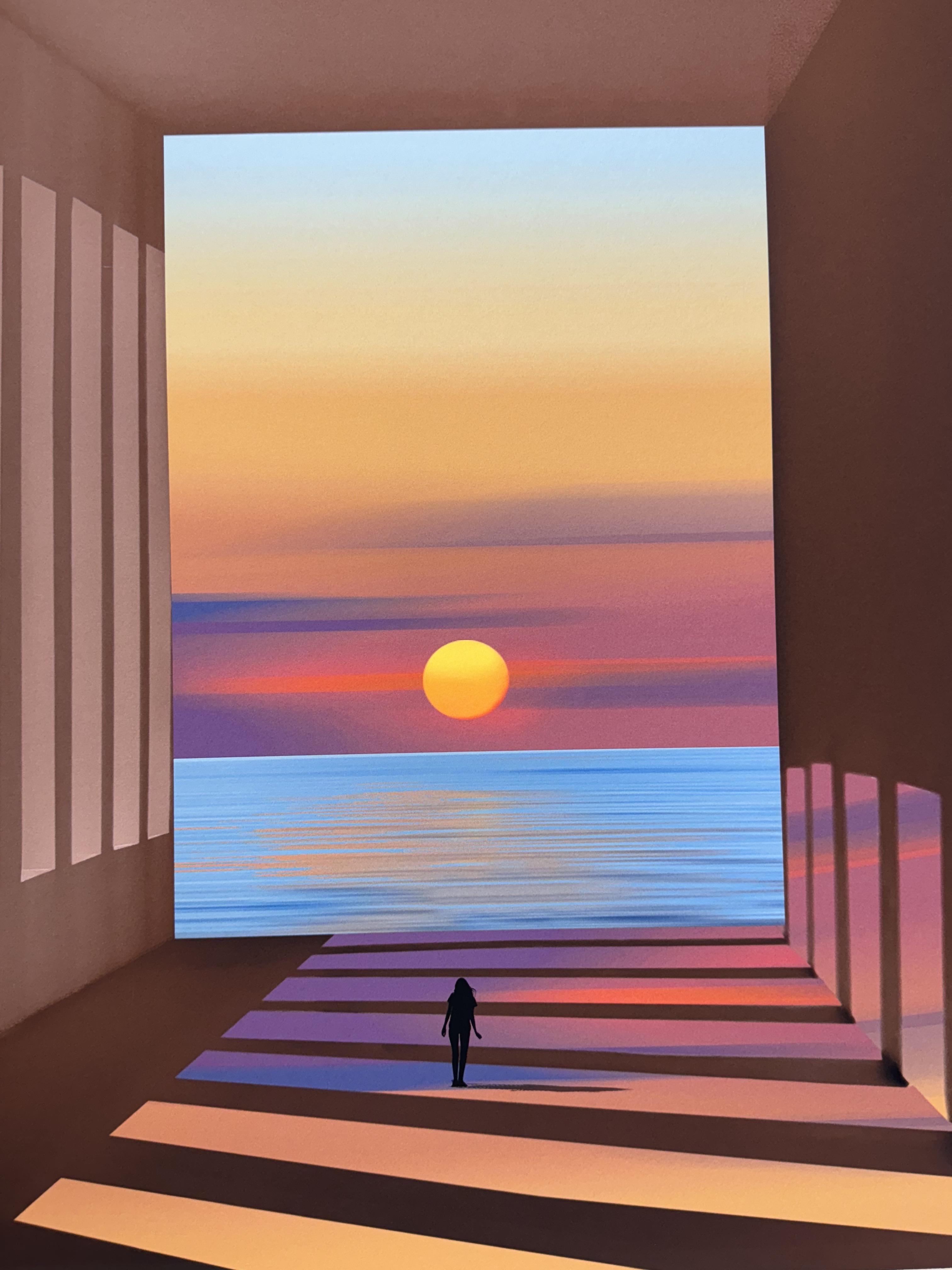 해가 저물고 밤이 찾아옵니다. 벌써 한참을 걸어왔는지 뒤돌아보니 사막 모래에 발자국이 찍혀 있습니다. 바람이 불면 그 흔적조차 사라져 버리겠지만, 우연히 다른 여행자들을 발견합니다. 누군가는 연인, 누군가는 가족, 친구와 손을 잡고 자신만의 ‘그곳’을 향해 걸어갑니다. 작가 제시 스톤은 다채로운 색감을 활용해 완전한 몰입을 유도합니다. 작가는 작품을 통해 자연의 풍경이 지닌 아름다움과 사람들의 새로운 관점에 주목하며 사람은 함께 있을 때 더 강하고, 행복해진다고 말합니다.