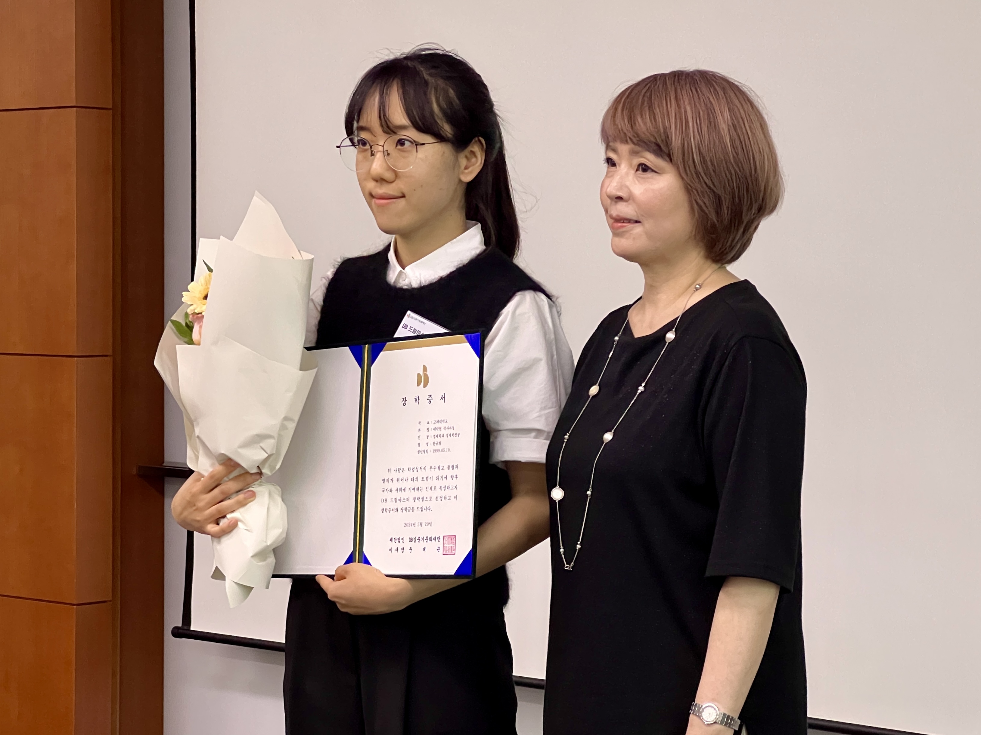이어 DB김준기문화재단 윤대근 이사장을 대신해 강은정 상임이사가 장학생 한 명 한 명에게 ‘DB 드림마스터 장학증서’와 꽃다발을 수여하고, 앞으로 사회에 기여하는 인재로 성장해 갈 것을 당부했다.
