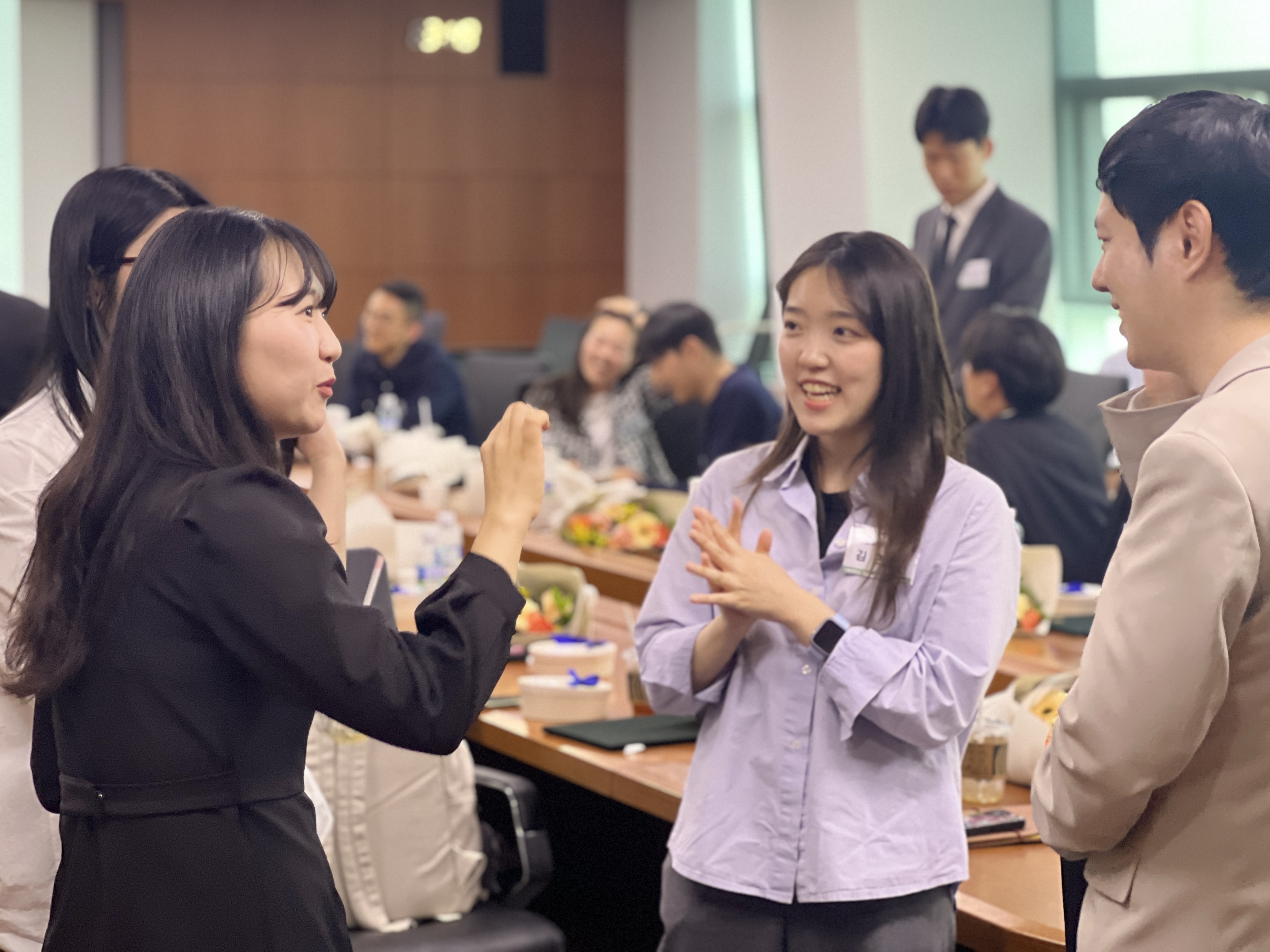 다과회가 끝나서도 장학생들은 유사 전공자들끼리 모여 관심사를 나누며 이야기를 이어갔다. 통계학을 전공하고 현재 의료 데이터를 처리하고 있는 박상용 장학생과 통계학 석사과정에 진학한 김지수 장학생, 도시공학을 전공해온 도수현 장학생은 통계 분야의 최신 연구주제를 공유했다.