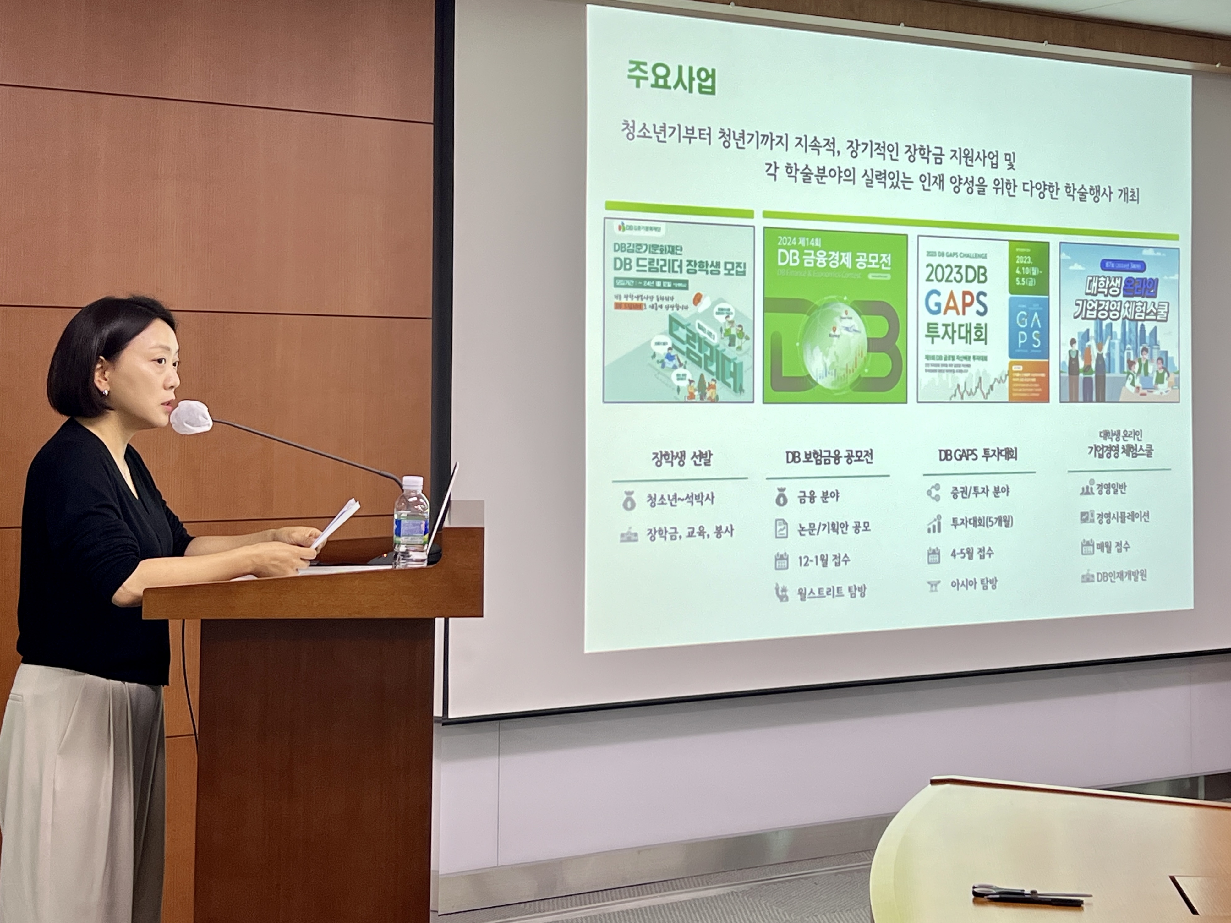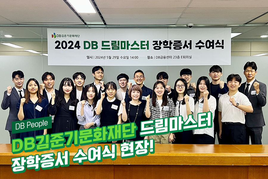 2024년 5월 29일 서울 강남구 테헤란로 DB금융센터 E회의실에서 열린 ‘2024 DB 드림마스터 장학증서 수여식’에서는 선발된 장학생들에게 장학증서를 수여하고 다과를 나누며 미래 사회를 위해 어떻게 힘을 모을지 활동 아이디어를 나누는 자리가 마련됐다.