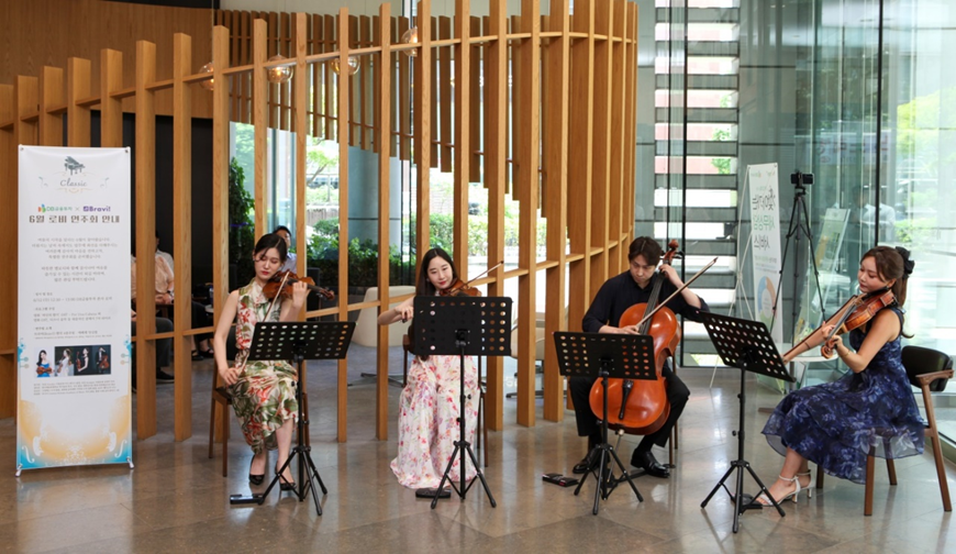 점심식사를 마치고 사무실로 이동하던 직원들은 로비에서 들려오는 부드러운 클래식 선율에 걸음을 멈추고 귀를 기울였다. 이날 연주회는 방가연 바이올리니스트, 정다운 바이올리니스트, 박천휘 첼리스트, 김진선 비올리스트의 협연으로 이루어졌다.