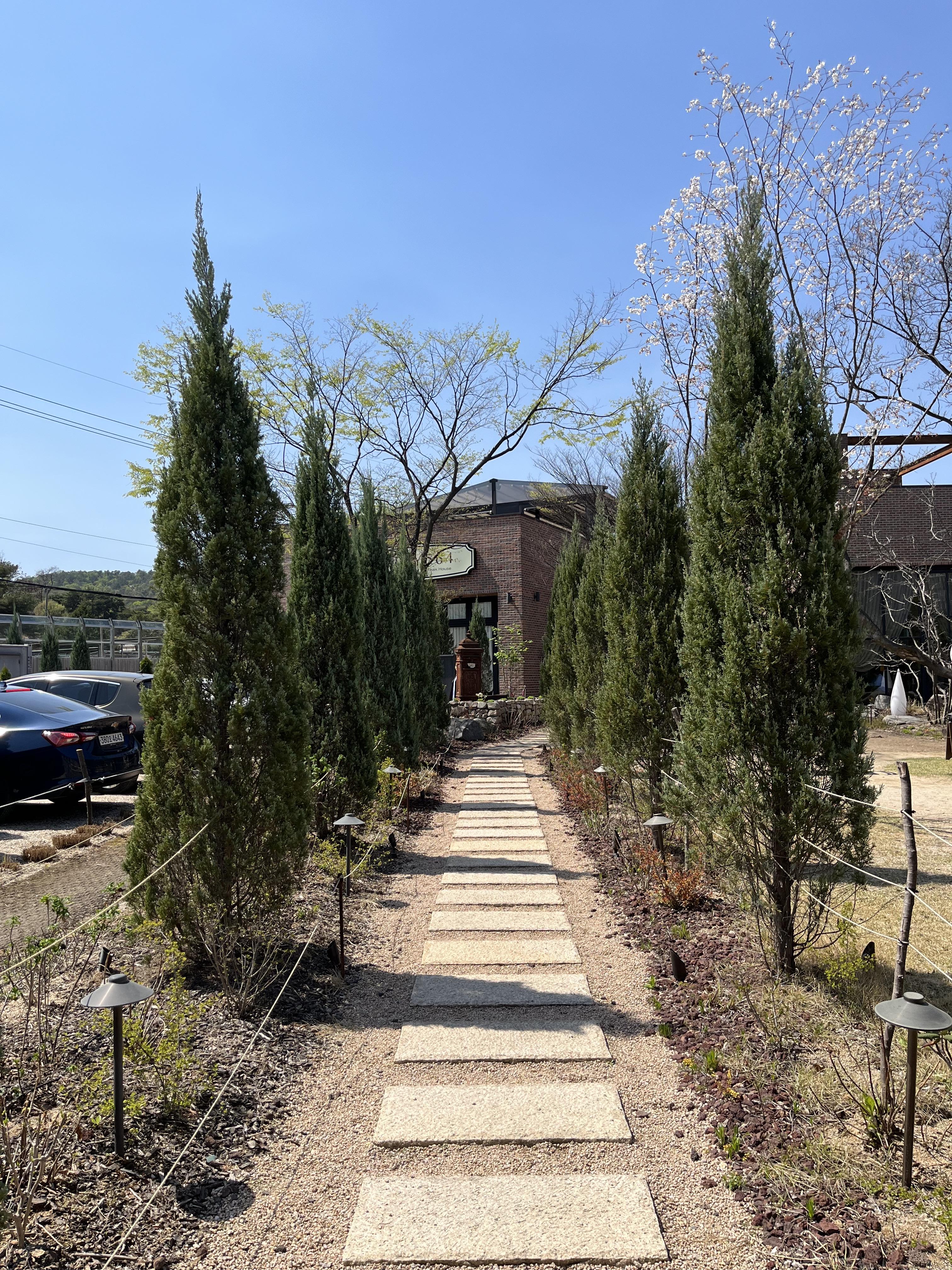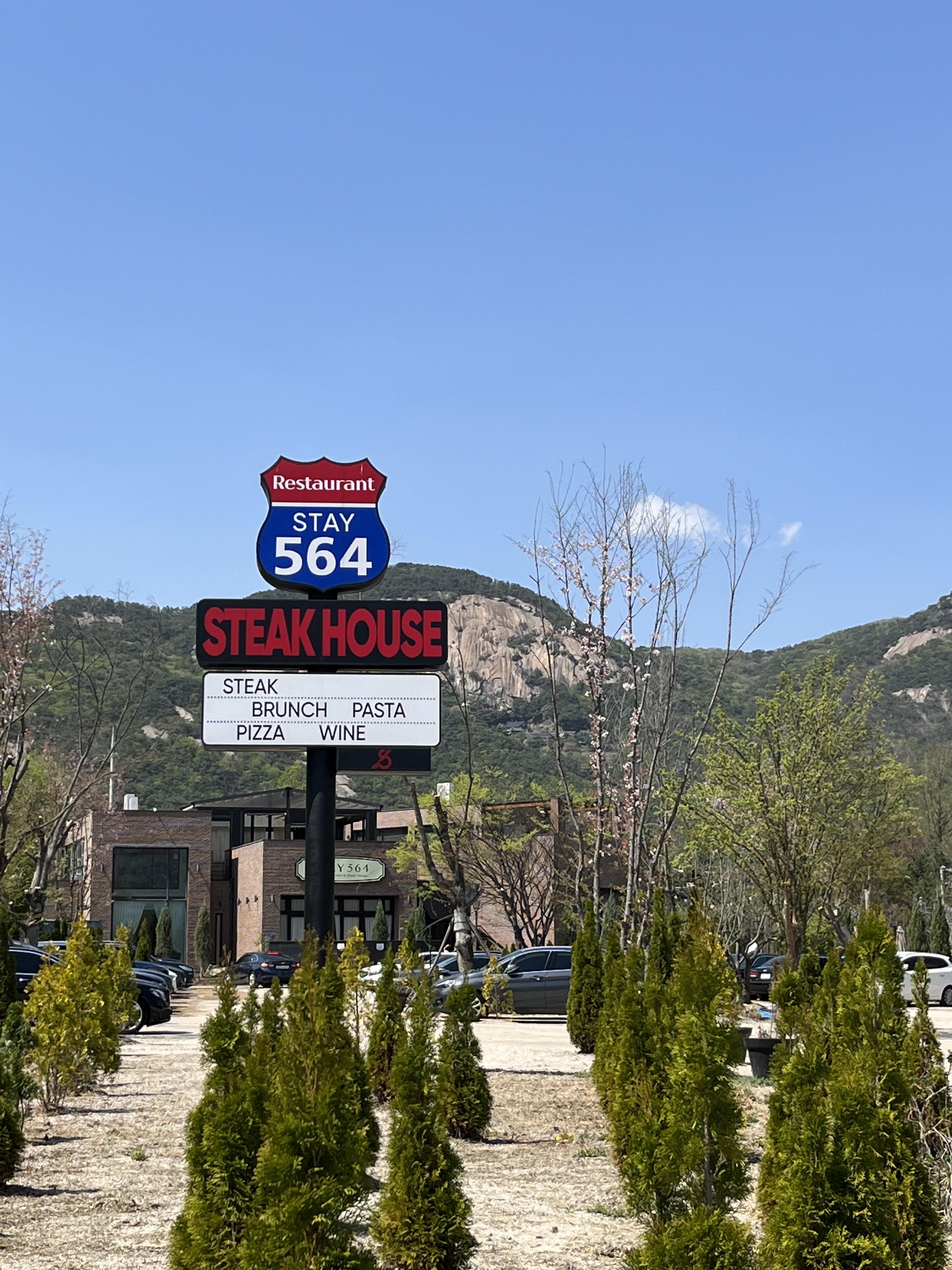 남양주에서 가족들과 함께 갈만한 곳을 찾으신다면, STAY564 스테이크 하우스도 추천할 만한 패밀리 레스토랑입니다. 길쭉한 사이프러스 나무 사이를 따라 걷다 보면 도심과는 멀찍이 떨어진듯한 전원적이기도 이국적이기도 한 공간이 펼쳐집니다. 레스토랑의 내부가 워낙 넓고 층고가 높아 많은 인원이 모임을 하기에도 적당해 보였는데요. 실제로도 대가족이라거나 회식으로 찾은 손님들을 쉽게 볼 수 있었습니다.