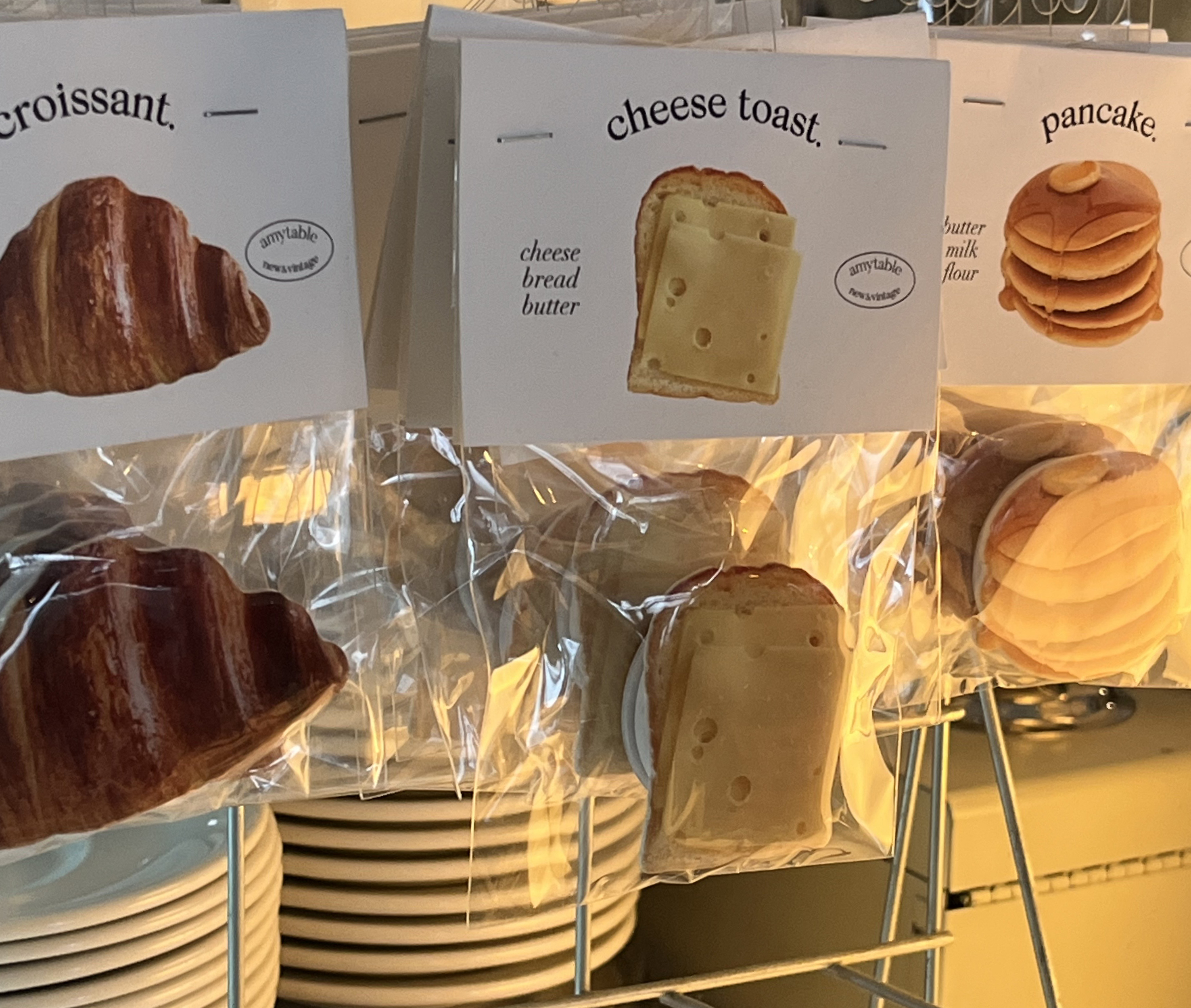 식료품들을 구매할 수 있는 드로게리아와는 달리 에이미테이블에는 나의 주방에 올려놓고 싶은 식기와 커트러리들이 한가득이었습니다. 담음새가 보기에 좋으면 음식도 더 맛있어 보인다고 해야 할까요? 누군가를 초대해 음식을 대접할 때, 나 혼자 음식을 차려 먹더라도 예쁘고 맛있게 차려 먹고 싶을 때 준비해두면 좋을 만한 예쁜 그릇들이 다양하게 준비되어 있었습니다. 주문한 음식을 기다리며 키링들과 빵 모양 그립톡 같은 귀여운 소품들을 보는 재미도 쏠쏠합니다.
