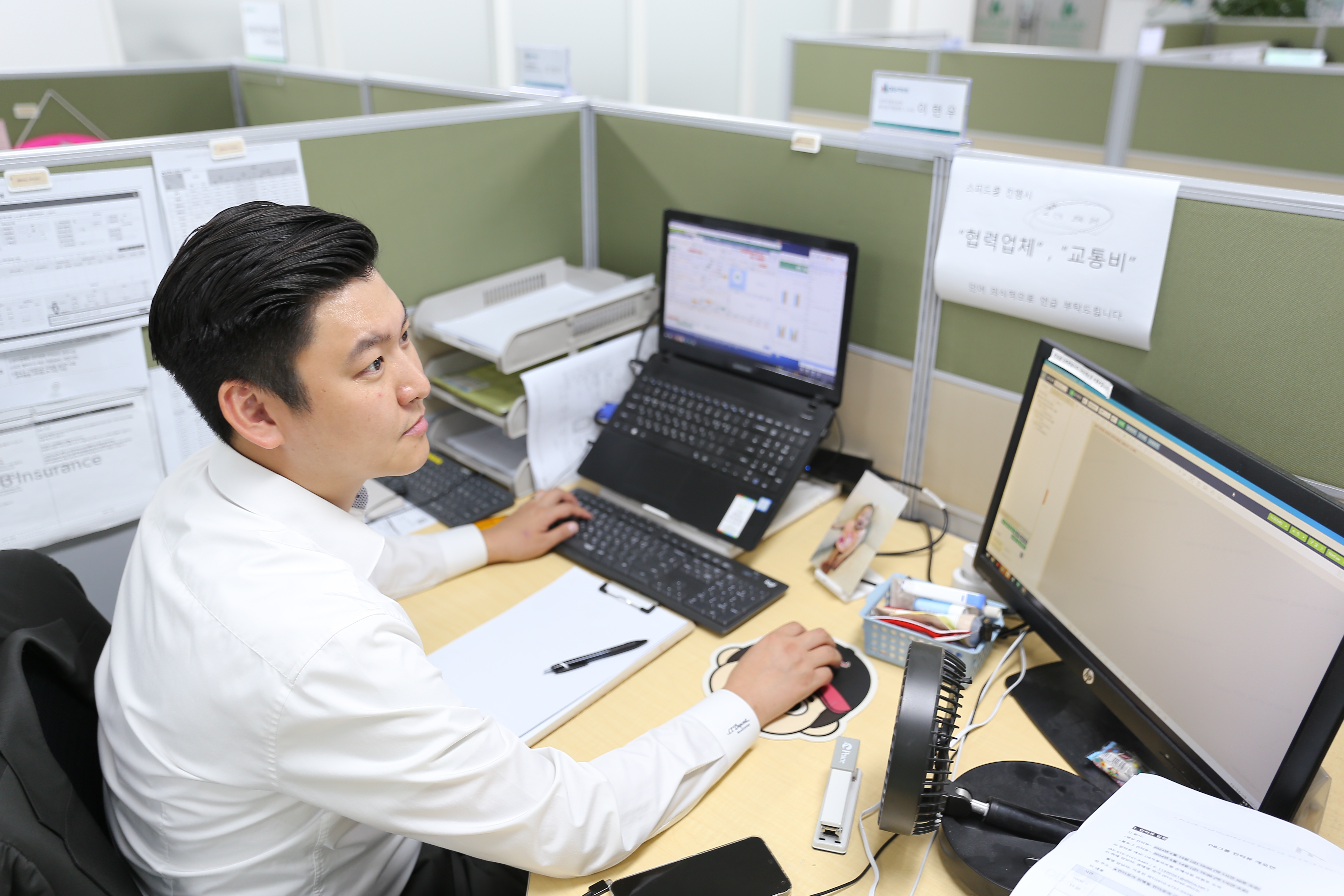 회사에 다니며 정말 감사한 분들이 많은데 김성복 부장님께 가장 감사합니다. 저희 업무는 저같이 현장 실무를 하는 직원과 본점에서 저희 업무를 지원 및 통계, 인사업무 등을 하는 직원들로 나뉘는데 현장 실무를 하다 보면 아무래도 회사 업무에 대한 시야가 좁아집니다. 그런 부분에서 시야를 정말 많이 넓게 해주시고 업무 외적으로도 많이 배우게 돼서 사람으로 직원으로서 한 단계 성장하게 해주신 분이라고 생각합니다.