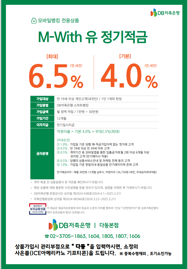 -가입방법: DB저축은행 스마트뱅킹(아래 QR코드 확인)
