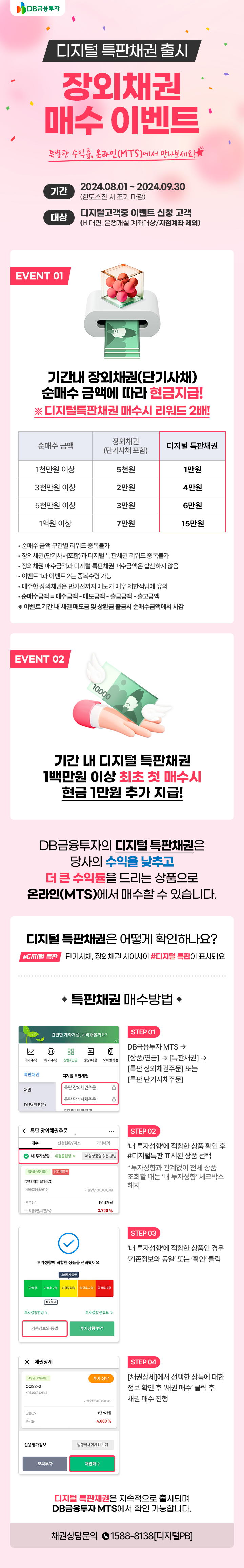 2. 기간내 디지털 특판채권 1백만원 이상 최초 청 매수시 현금 1만원 추가 지급