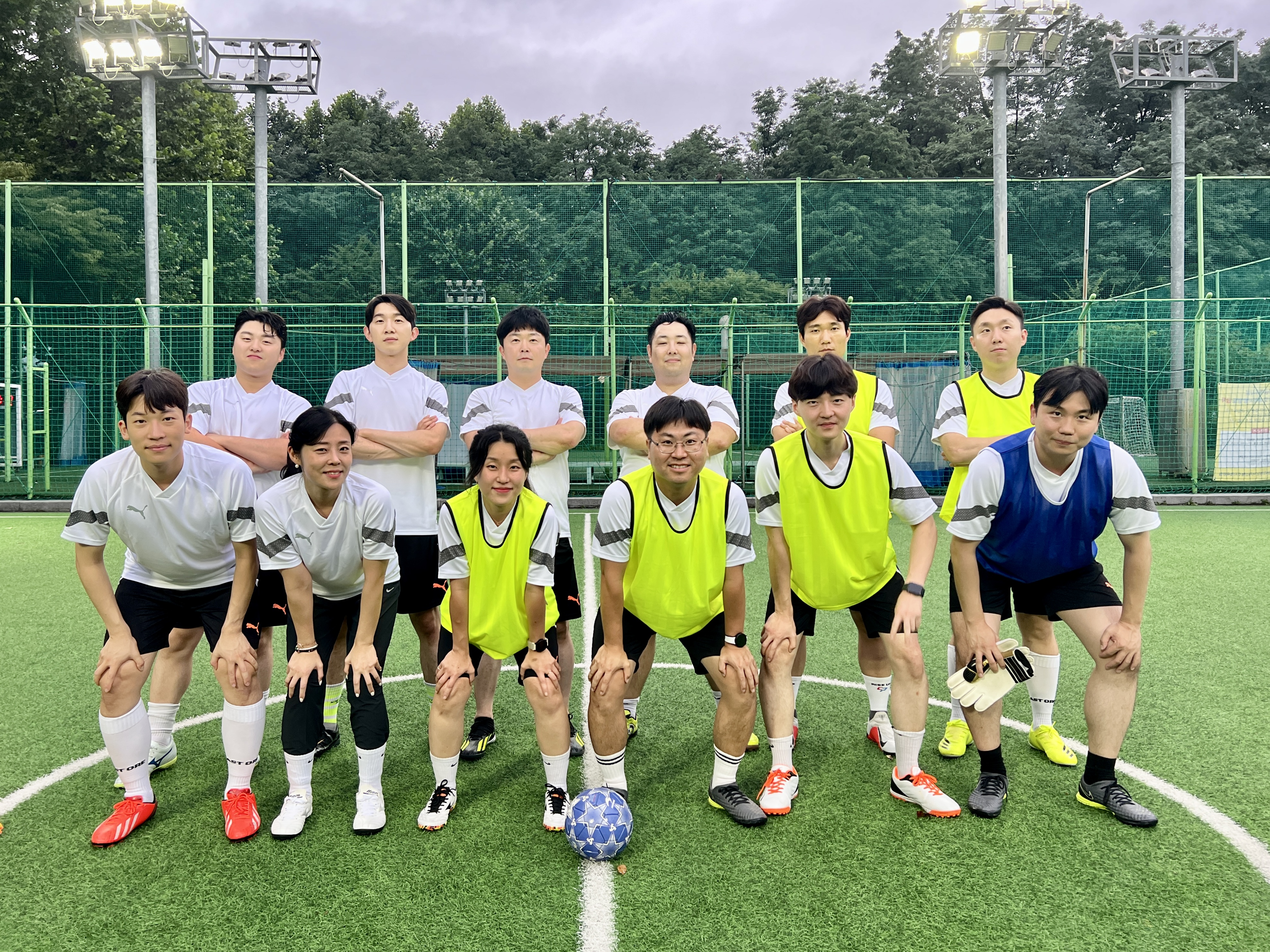 장마비가 그친 광진구 아차산의 한 체육공원 풋살장. 저녁 7시가 다가오자 하얀 유니폼으로 환복한 동호회원들이 하나 둘 모여 반갑게 인사를 나누고 몸을 풀기 시작한다.