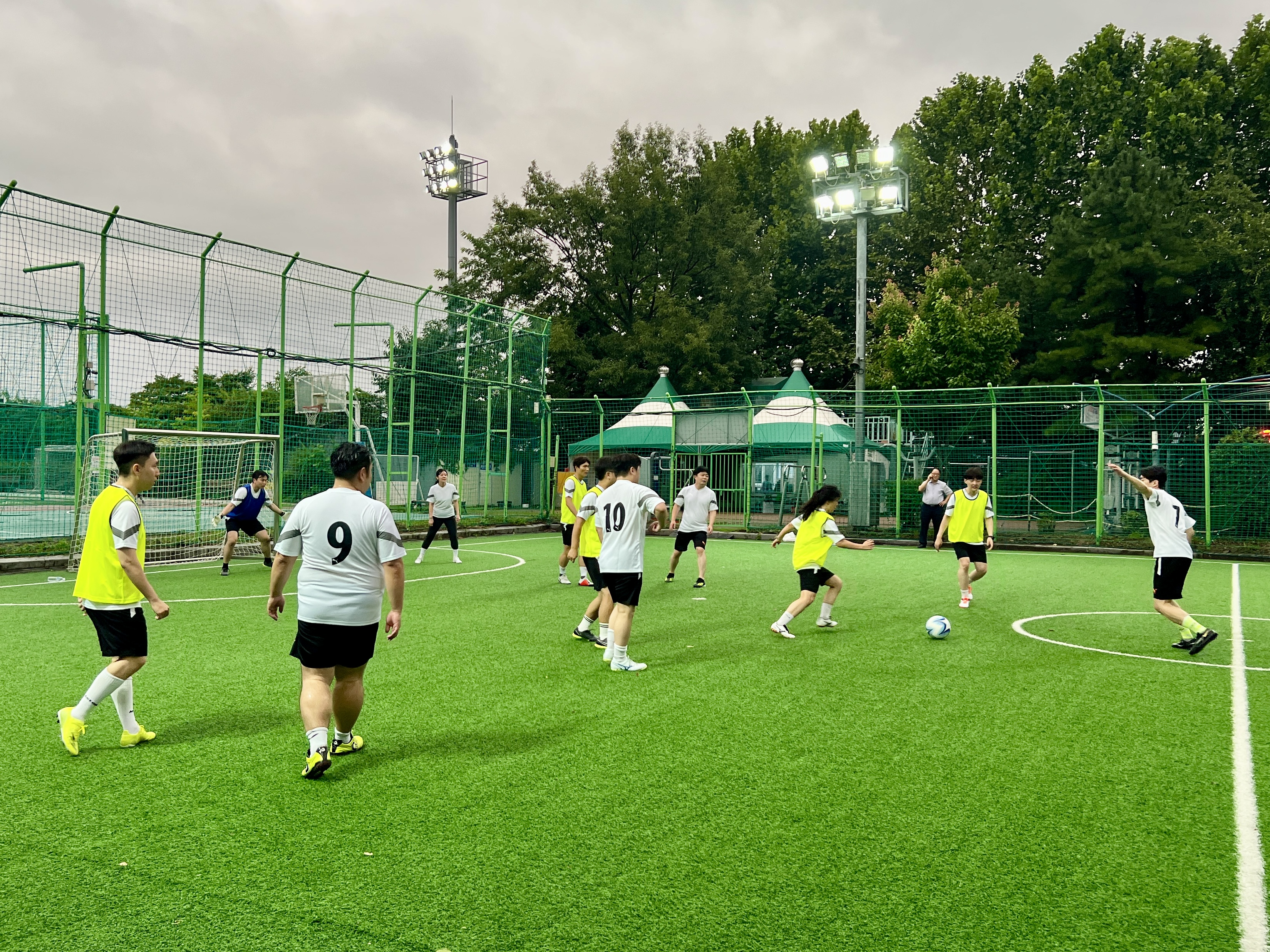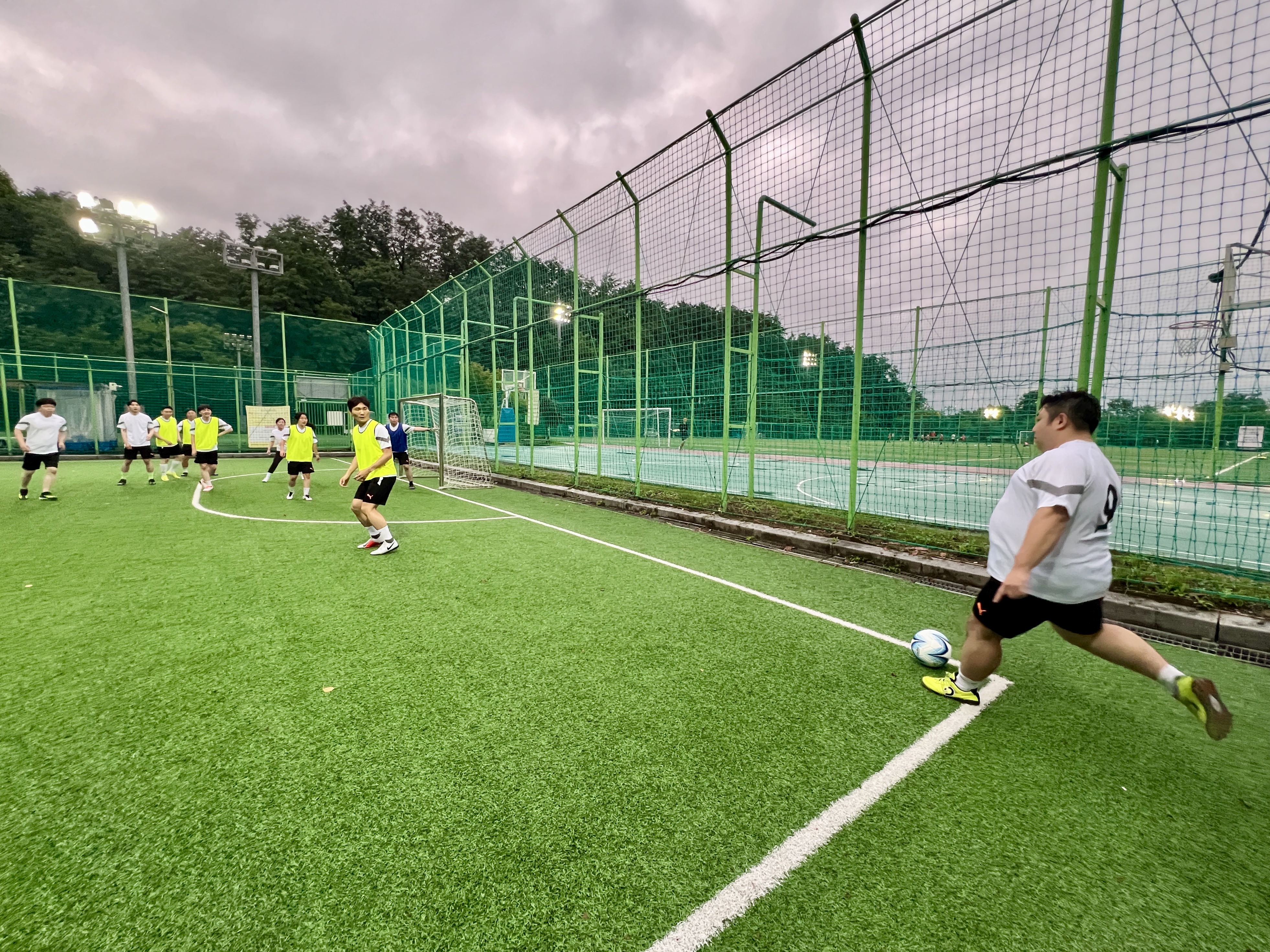이미 어둑해 진 하늘에 밤 공기는 많이 식었지만 풋살장은 시종일관 뜨거운 열기가 가득하다. 누구 하나 공을 못 가지는 사람이 없고 골 역시 약속이나 한 듯 골고루 집어 넣는다. 동호회원들이 경기장을 누비면서 현란한 발 재간과 함께 엄청난 스피드로 움직이는 긴박함과 스릴이 손에 땀을 쥐게 한다.