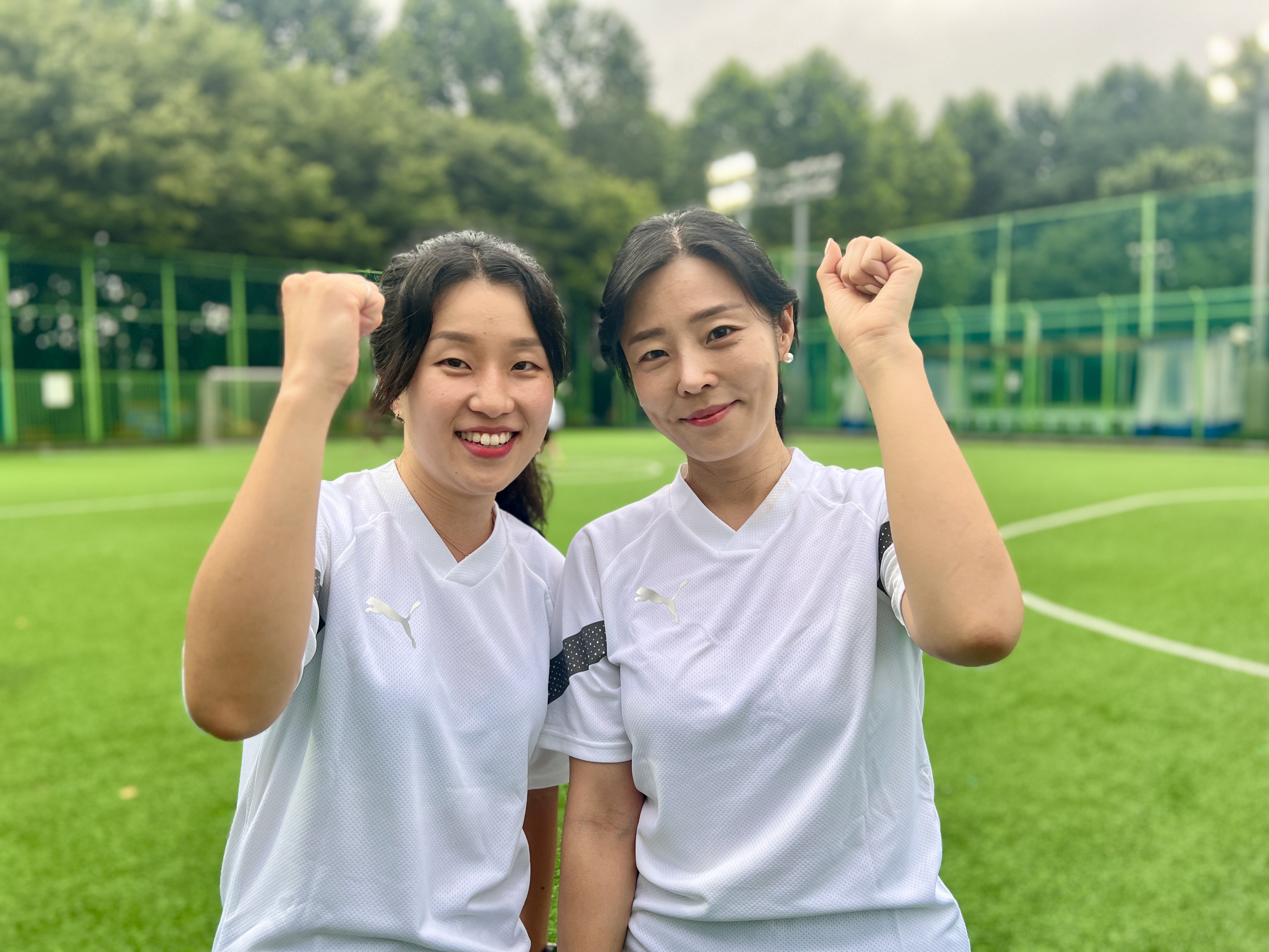 안부를 나누는 회원들 사이, 축구를 주제로 한 SBS 연예 프로그램 [골 때리는 그녀들]에 나올 법한 여성 사커 두 명이 눈에 띈다.