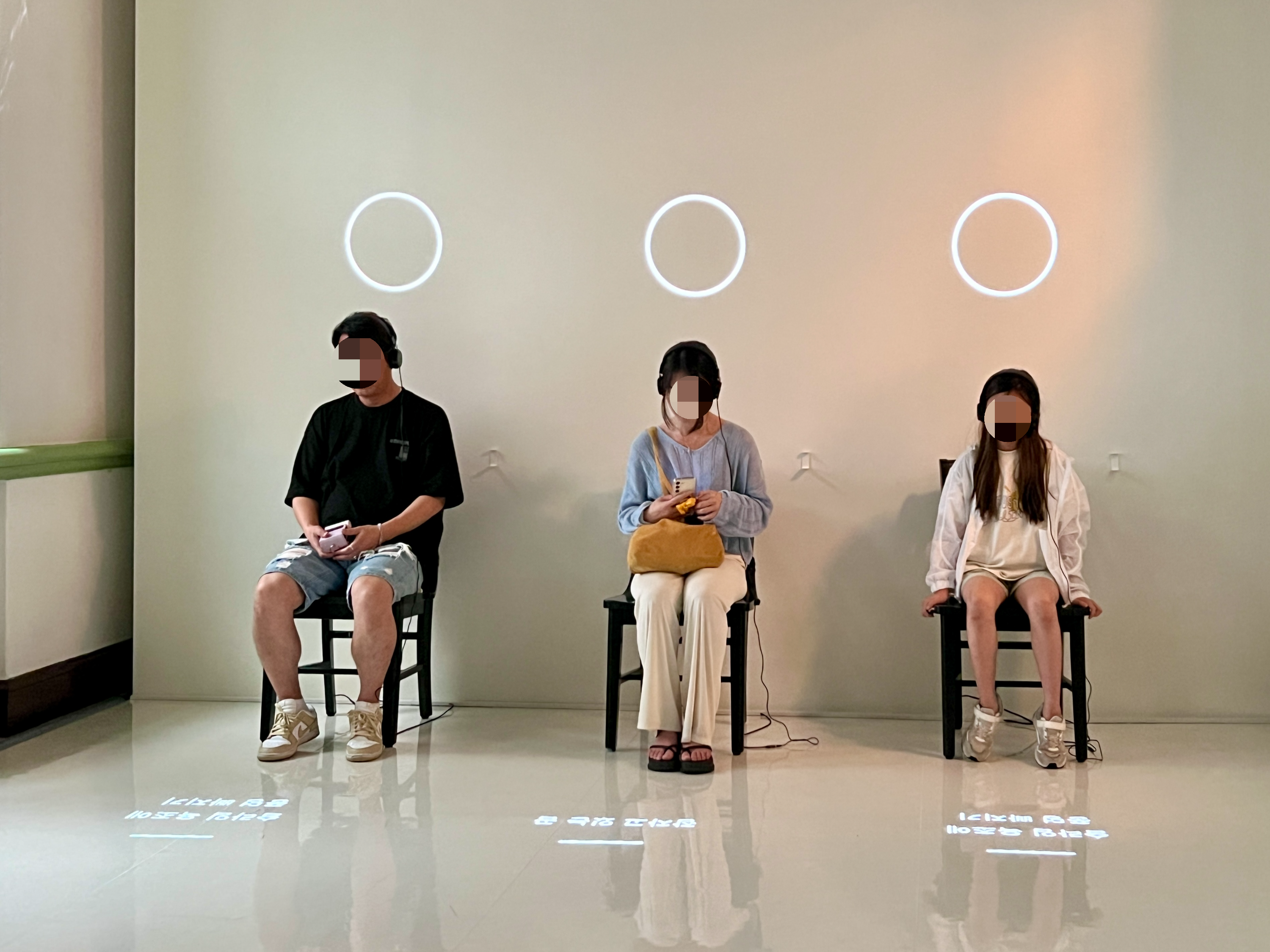 역장실에는 보스턴을 중심으로 활동하는 쏘쏘(SOSO)가 미국 도서관에서 영감을 받아 제작한 공감각 작품 〈Seated Catalog of Feelings〉(2018)가 놓여있어요. 이곳에서 관객은 의자에 앉아 헤드폰을 쓰고 바닥에 투사된 텍스트와 연동되는 진동을 온몸으로 체험할 수 있어요.