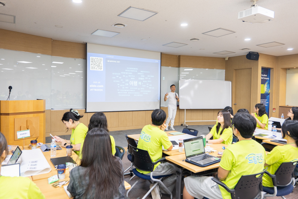 이번 드림리더 성장캠프는 장학생들의 중간 활동을 점검하고 팀별 네트워킹을 강화하며 ESG에 대한 이해와 하반기 활동 창의력을 돋우는 프로그램으로 준비했다. 특히 5월에 선발된 드림마스터 선배와의 진로멘토링 시간도 기획되어 더욱 알찬 프로그램으로 준비된 가운데 성장캠프에 참여한 드림리더들의 활기 넘치는 교육 현장을 살펴봤다.