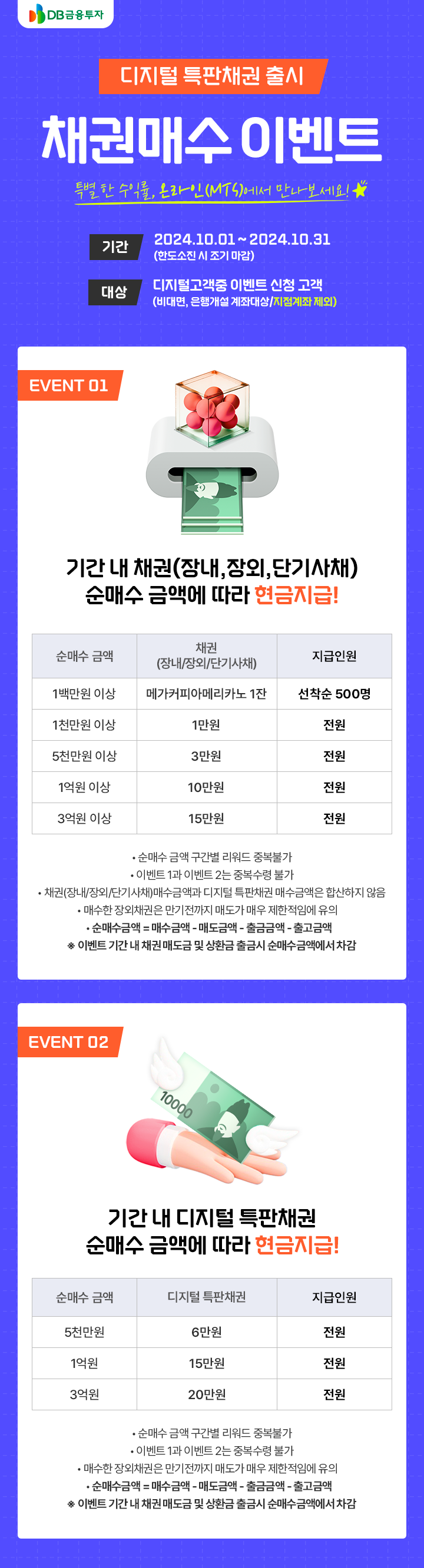 EVENT2. 기간 내 디지털 특판채권 순매수 금액에 따라 현금지급