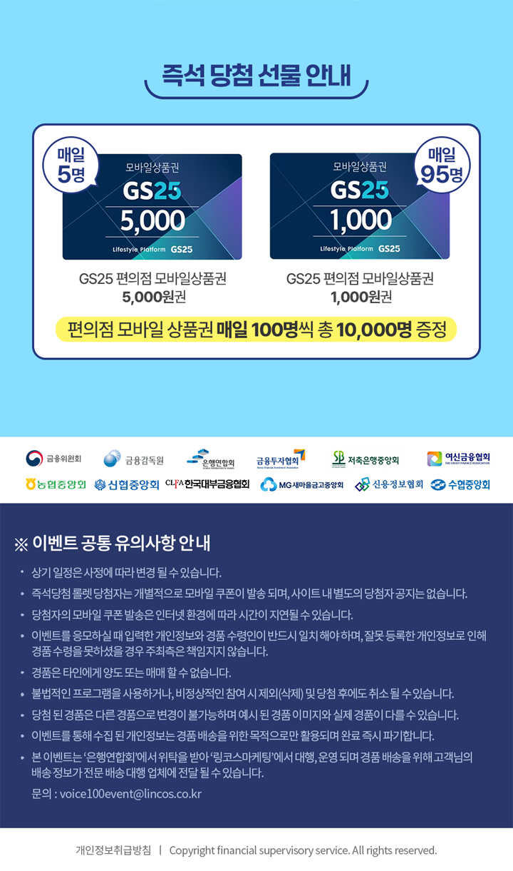 매일 100명 씩, 총 1만명에게 즉석 당첨 선물 증정