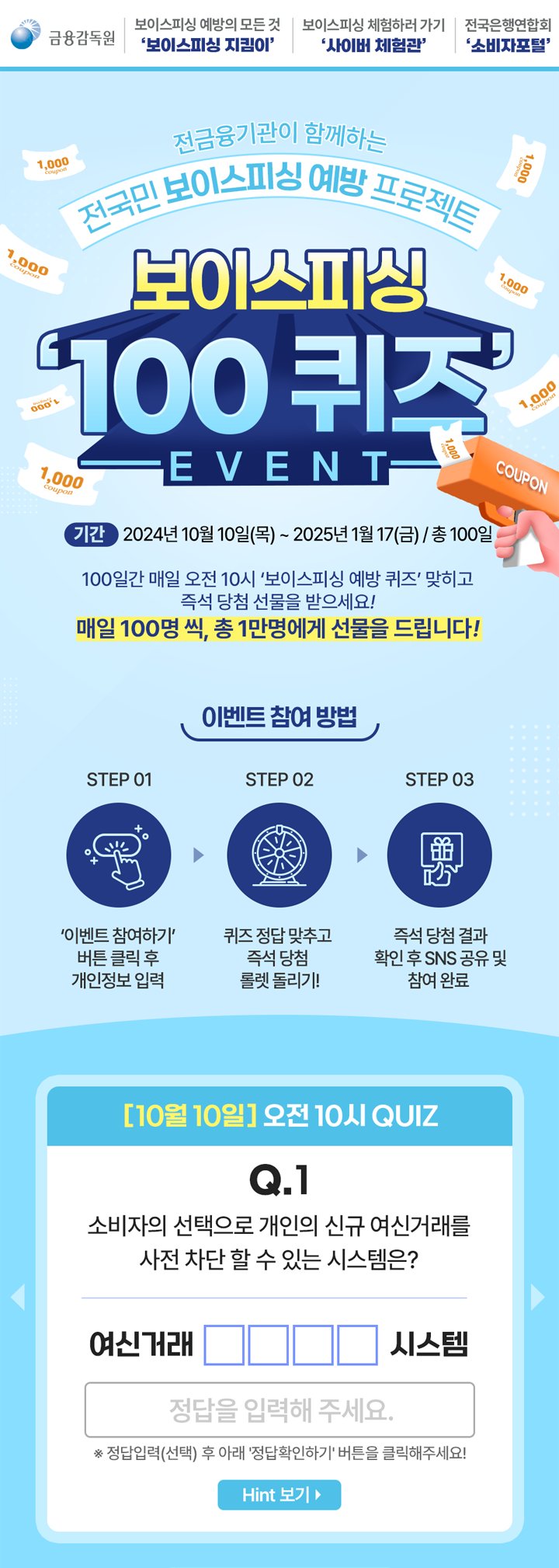 100일간 매일 오전 10시 '보이스피싱 예방 퀴즈' 맞히면