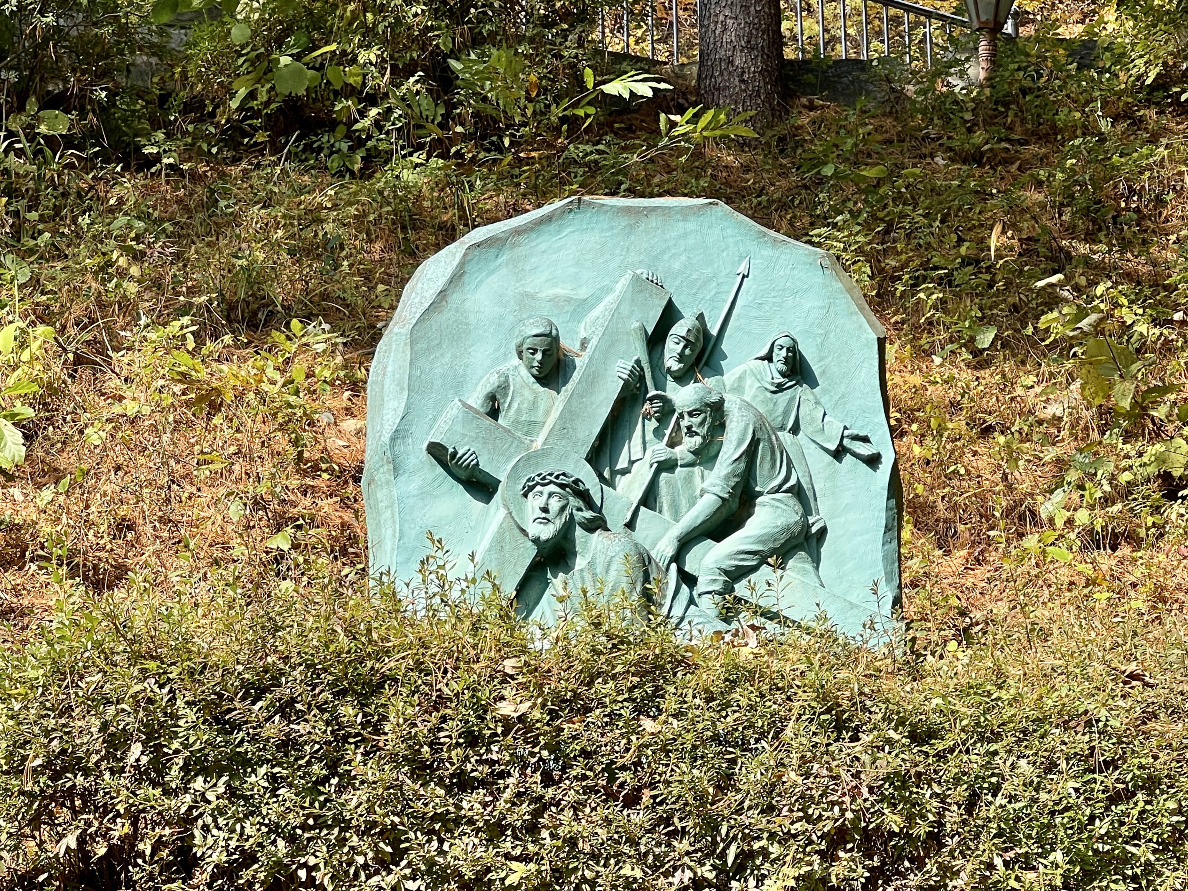 성 요셉 신학당 뒤편 양업 광장에서부터 ‘십자가의 길’이 시작돼요. 십자가의 길은 예수님의 고난과 죽음을 14곳으로 나누어 묵상하는 장소입니다.