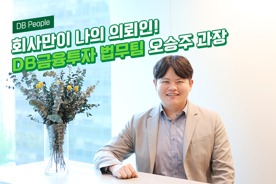 이러한 네트워크의 시너지를 기반으로, DB금융투자는 수준 높은 토탈 금융 서비스를 제공하고 물질적 가치를 넘어서는 유대감을 형성하며 고객 자산 관리에 최선을 다하고 있습니다. DB금융투자는 다양한 고객의 니즈를 충족시키기 위해 주식, 채권, 파생상품, 자산관리, 법률, 세무, 리서치, 자산운용, 리스크 관리 등 다양한 분야의 전문가를 양성해왔습니다. 오늘은 DB금융투자 법무팀의 오승주 과장을 만나 그의 직무에 대해 자세히 알아보겠습니다.