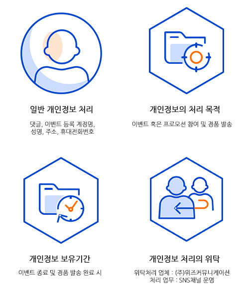 | ㈜위즈커뮤니케이션 | SNS채널 운영 | 이벤트 및 프로모션 종료 3개월 후, 또는 위탁계약 종료 시 |
