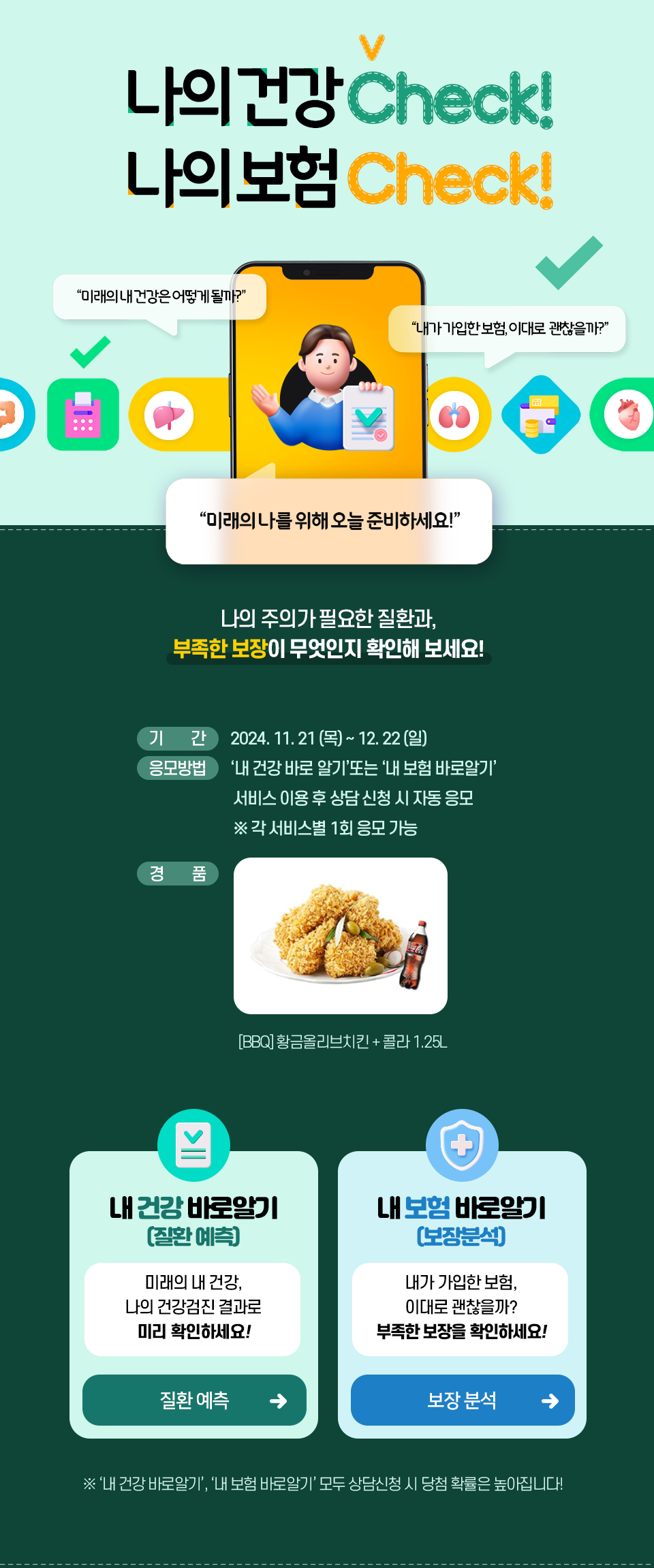 '내 건강 바로 알기' 또는 '내 보험 바로알기' 서비스 이용 후 상담 신청 시 자동 응모