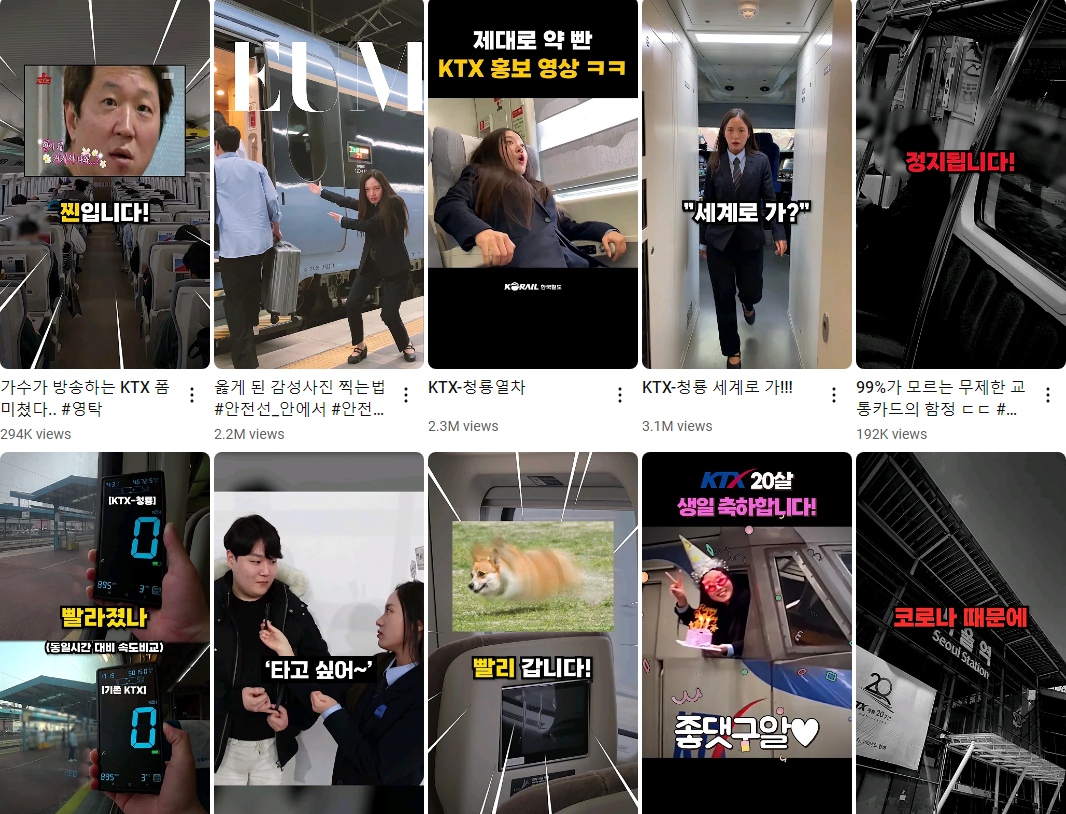 채널이 커지면서 시청자 반응도 더욱 뜨거워졌어요. 2024년 5월 1일부터 영업 운행을 시작한 KTX-청룡을 홍보하는 ‘KTX-청룡열차', ‘KTX-청룡 세계로 가!!!' 쇼츠 영상은 2024년 9월 기준 각각 232만, 318만의 조회 수를 기록하고 있어요. ‘KTX-청룡 세계로 가!!!' 쇼츠 영상에는 좋아요 6만 8천개, 댓글 3,600개가 달리기도 했죠.