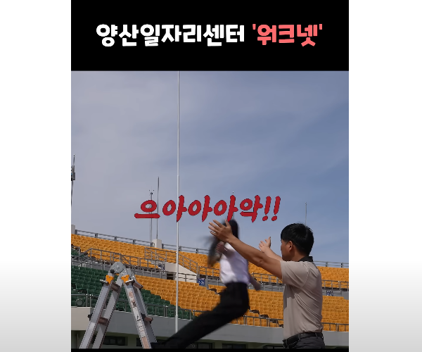 2024년 5월 업로드된 양산시 일자리센터 워크넷 홍보 영상에는 양산 시청 홍보팀 소속 민홍식 팀장과 하진솔 주무관이 등장해요. 두 사람은 '아무나 믿을 수 없는 상황'을 재치 있게 연출한 뒤, 양산시의 워크넷은 믿을 수 있는 취업 정보를 제공한다는 의미를 전달해요.