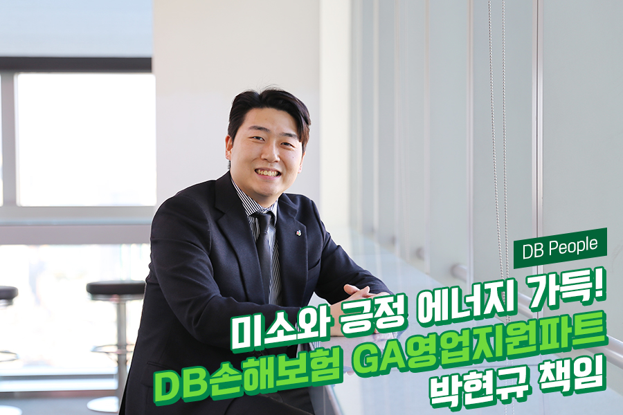 DB손해보험은 고객의 가치를 최우선으로 생각하는 종합손해보험 회사입니다. DB손해보험의 업무 부서는 영업관리(개인/전략/법인/신사업), 보상관리, 상품업무, 언더라이팅(U/W), 자산운용, 경영지원 등 6개 직무로 세분화되어 있는데요. 오늘은 영업관리 직무 GA영업지원파트의 박현규 책임을 만나 직무에 대해 알아보겠습니다.