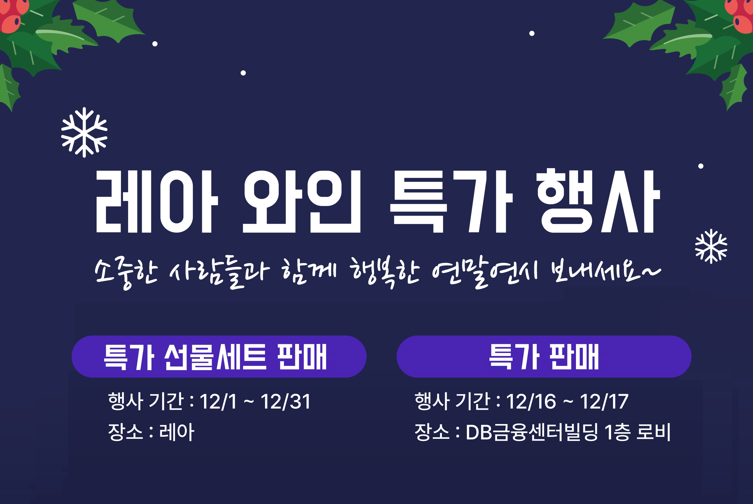 일정 : 12월 16일 ~ 12월 17일 (2일간, 30% 할인)