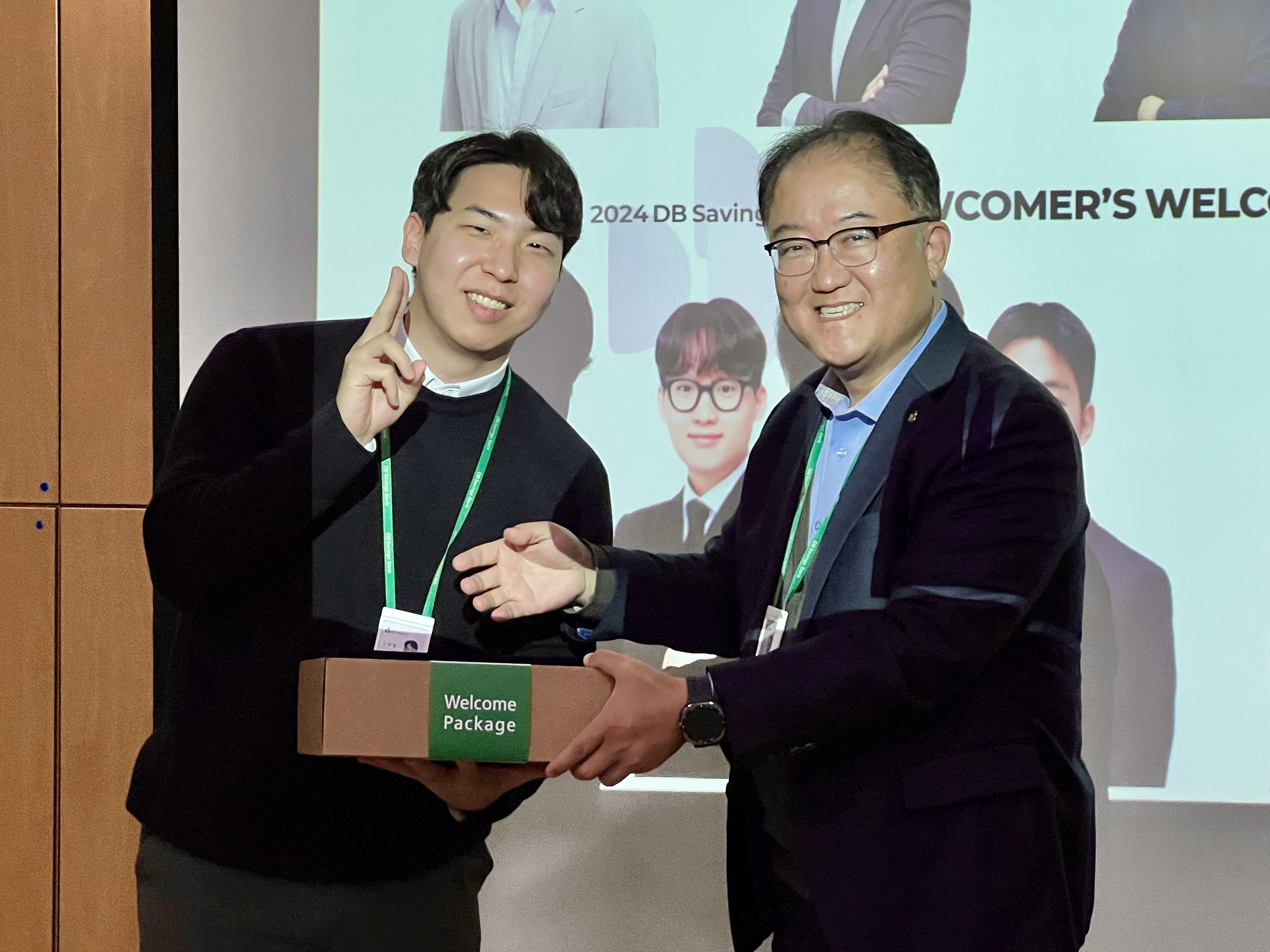 곧이어 신입사원의 새로운 출발을 응원하는 웰컴 패키지 수여식이 이어졌다. 웰컴 패키지는 임훈재 경영지원실장이 직접 수여했고, 함께 수여된 상장에는 DB저축은행 대표이사 윤재인 사장의 환영 메시지도 담겼다.