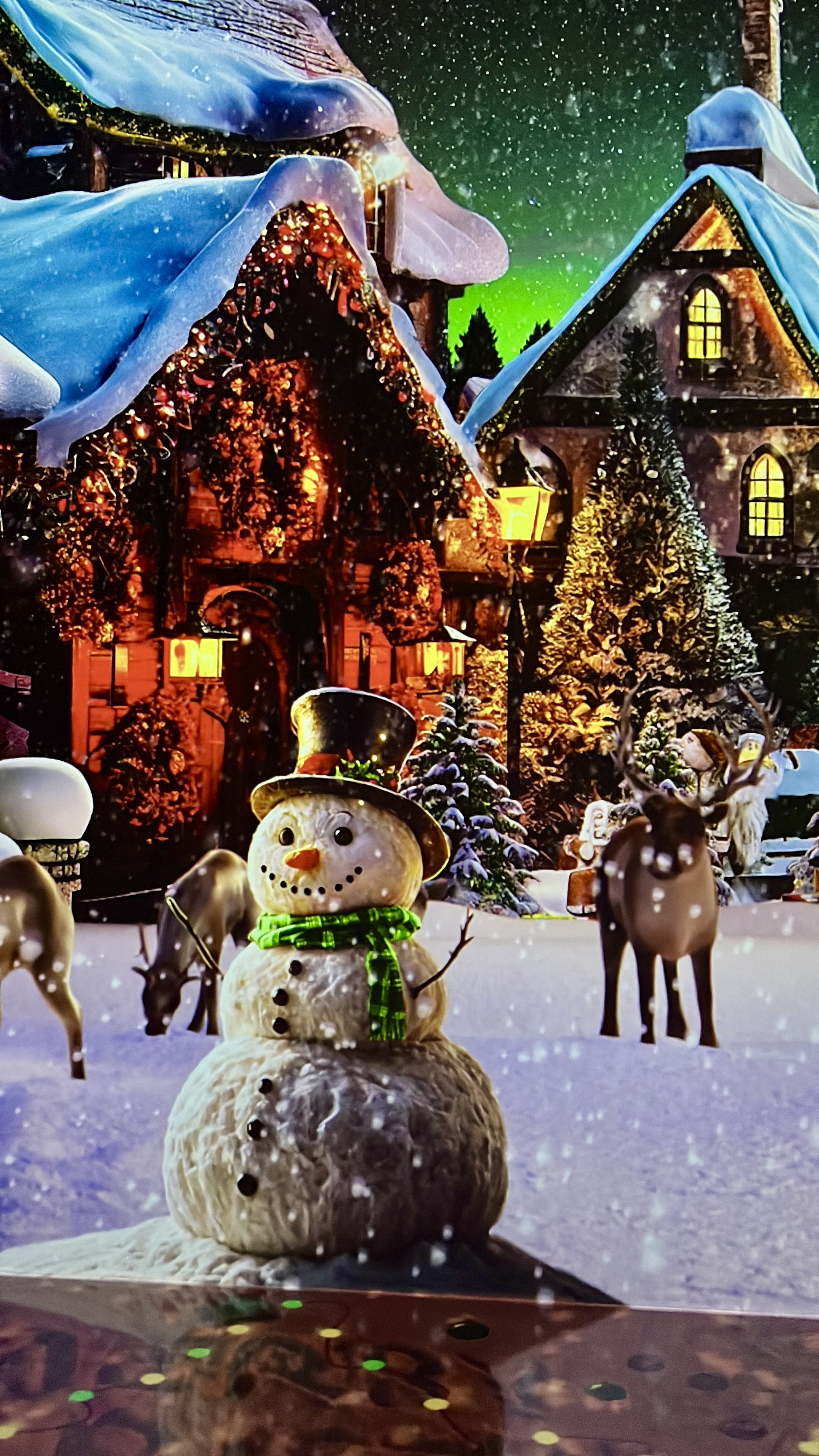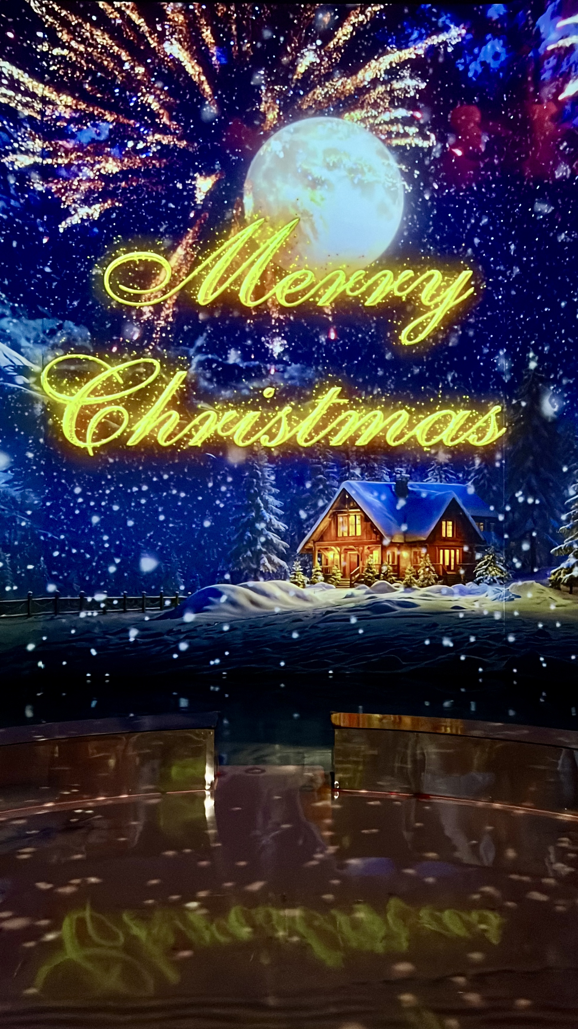 눈사람과 루돌프가 있는 동화적인 크리스마스 마을을 거닐다 보면 광장 중앙의 헥사곤에서 거대한 트리와 함께 하늘을 날아다니며 선물을 주는 산타클로스 썰매의 미디어아트를 만나게 돼요.